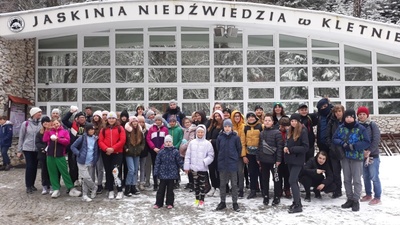 Szkolne Koło Turystyczne PTTK zorganizowało kolejną wycieczkę. Podczas sobotniej wyprawy uczniowie zobaczyli jedną z najładniejszych jaskiń w Polsce – Jaskinię Niedźwiedzią w Masywie Śnieżnika. Ponadto w Kletnie zwiedzili Muzeum Ziemi. Na koniec spacerowali ulicami Kłodzka. Przewodnik, pan Bartosz, pokazał najciekawsze zabytki Kłodzka oraz wspaniałą panoramę miasta i całej Kotliny Kłodzkiej widoczną z Twierdzy. W tradycji koła są konkursy na zakończenie wycieczki. Tak było i tym razem. Była to wykreślanka krajoznawcza, a dla najmłodszych uczestników – kolorowanka. Nagrody wylosowali: Magdalena Kowalska, Natalia Mariampolska, Urszula Sołtysiak, Ewa Świątek i Julia Walkowiak. Podczas wycieczki grupa uczniów otrzymała odznaki turystyczne: OTP i TP. Byli to: Zofia Haftaniuk, Oliwier Krasowski, Wiktoria Mikołajczyk, Ewa Świątek. Gratulacje!