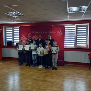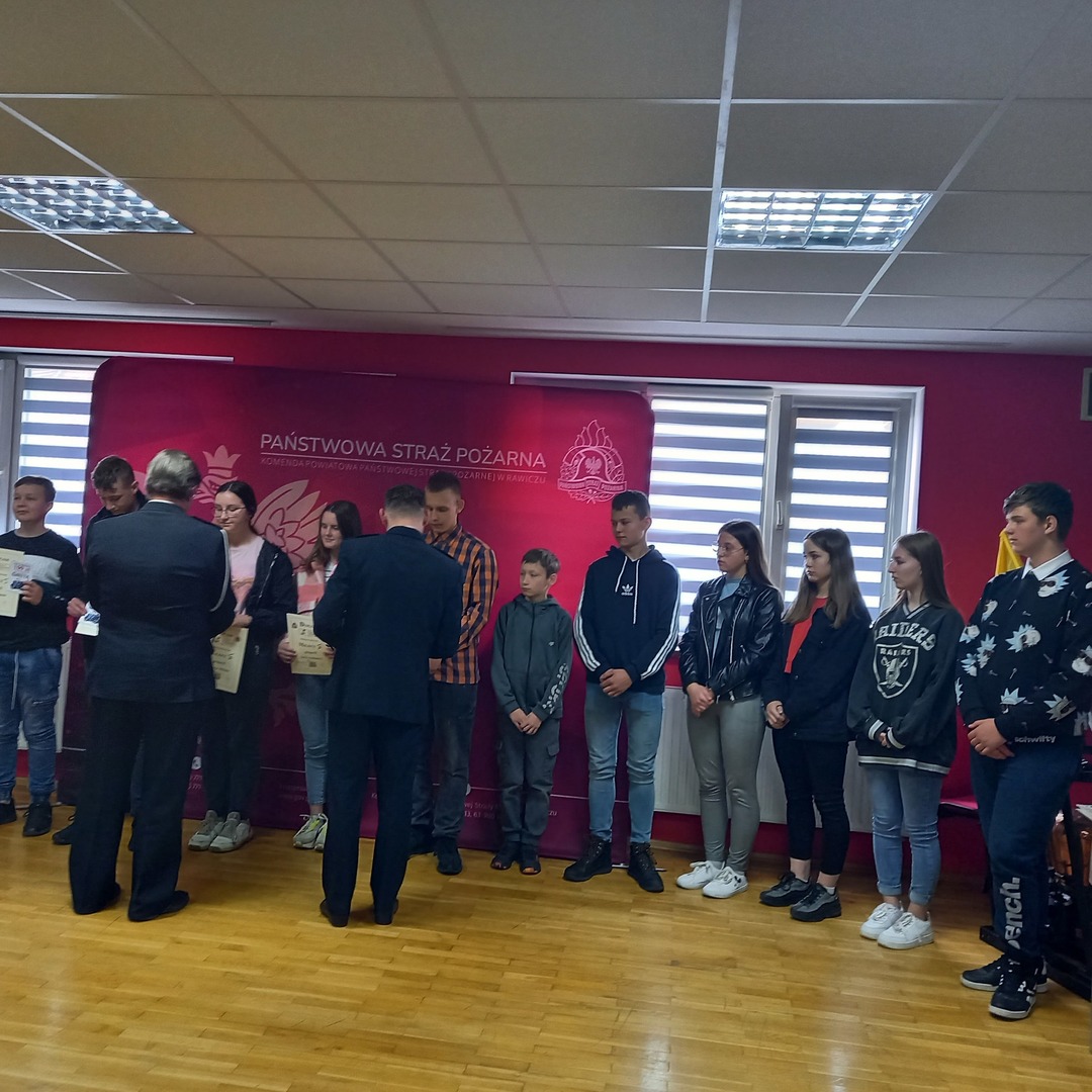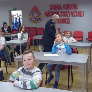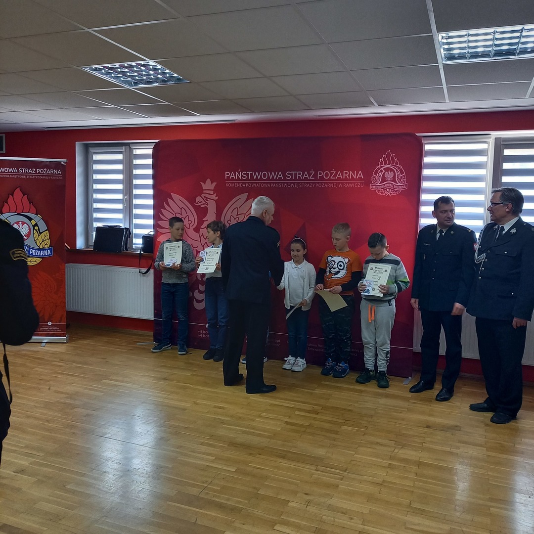 W czwartek 28 kwietnia w jednostce Państwowej Straży Pożarnej w Rawiczu odbyły się eliminacje powiatowe Ogólnopolskiego Turnieju Wiedzy Pożarniczej „Młodzież zapobiega pożarom”. W kategorii klas I- IV naszą Szkołę reprezentowali Michał Aleksandrzak, Alicja Zyber i Filip Ochlik z klasy III a. Natomiast w kategorii klas V- VIII w konkursie wzięli udział Patryk Szopa z 7d i Michał Tórz z 8d. Konkurs składał się z trzech części. Najpierw uczniowie rozwiązywali test, składający się z 35 pytań. W drugiej części uczestnicy rozpoznawali sprzęt ratowniczo-gaśniczy. W trzeciej części uczestnicy musieli rozpoznać rodzaj gaśnicy, omówić jej zastosowanie i sposób obsługi. Dzieci wykazały się dużą wiedzą zarówno teoretyczną jak i praktyczną z zakresu pożarnictwa. Najwyższe III miejsce zdobył Michał Aleksandrzak, natomiast Alicja Zyber IV miejsce. Michał Tórz uzyskał V wynik w swojej kategorii. Był to pierwszy występ w takim konkursie. Myślę, że zdobyte doświadczenie i wiedza zaprocentują w kolejnych edycjach.