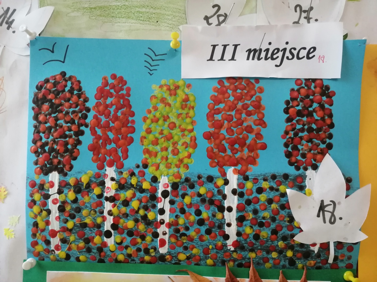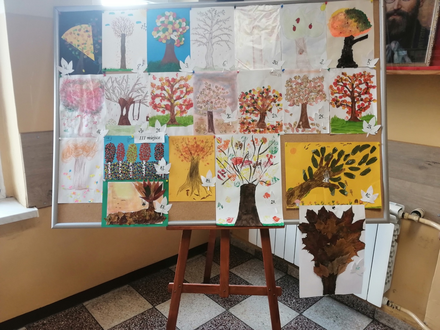 Z przyjemnością informujemy, że konkurs plastyczny dla klas I-III „Jesienne drzewo” został rozstrzygnięty. Młodzi artyści z klas I-III stanęli na wysokości zadania. Poziom prac wskazywał, że dzieci dostrzegają piękno matury i otaczających je drzew, a także umieją wykorzystywać i zestawiać różnorodne techniki plastyczne. Wszyscy, którzy widzieli wystawkę prac mogą przyznać, że pomysłowość i kreatywność dzieci nie zna granic.