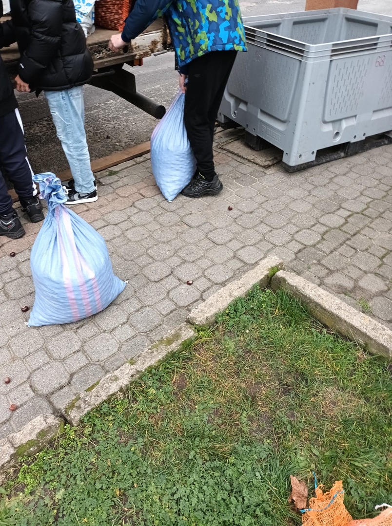 W poniedziałek 31 X 2022r. zakończyliśmy akcję zbierania kasztanów w naszej szkole. W akcję zaangażowało się wielu uczniów i rodziców, udało nam się zebrać ok. 1375 kg, to ogromny sukces!
