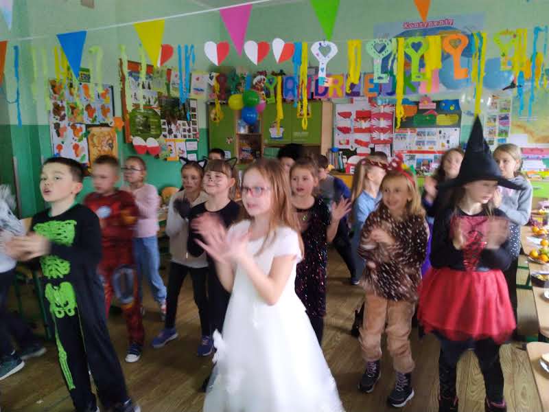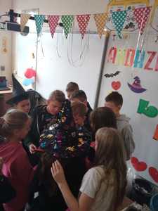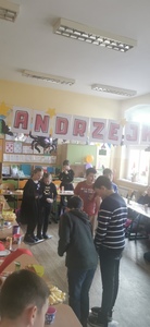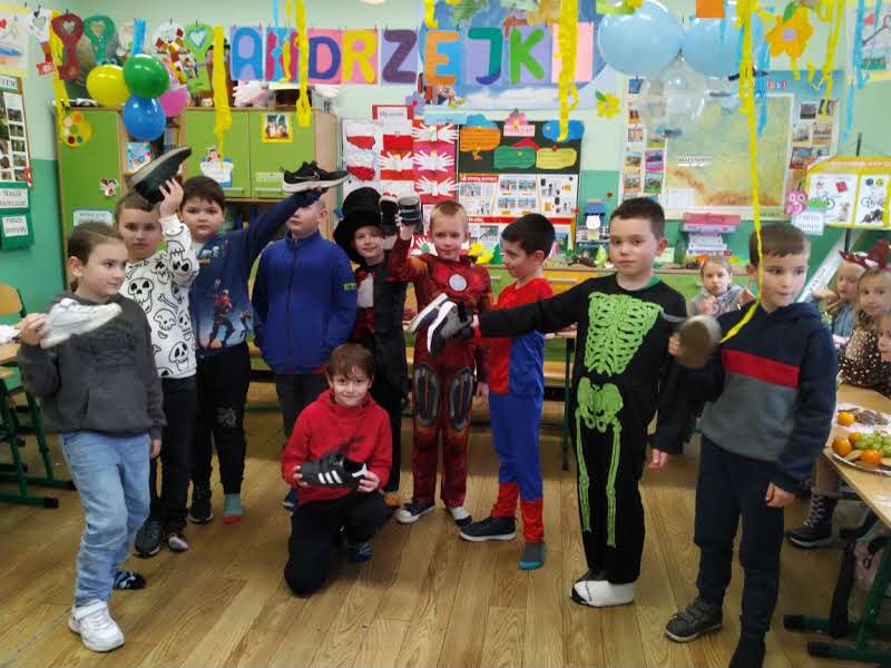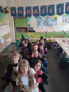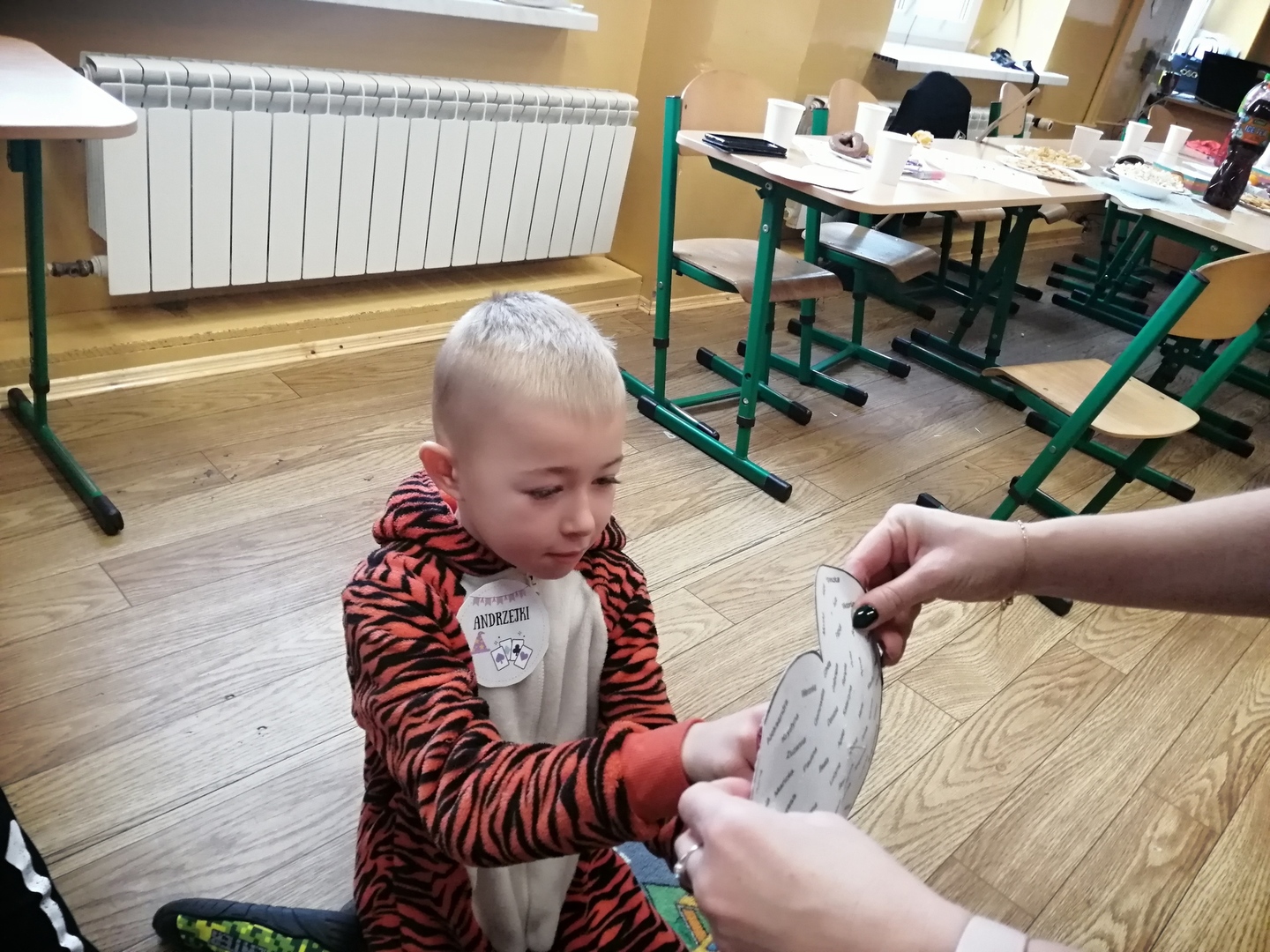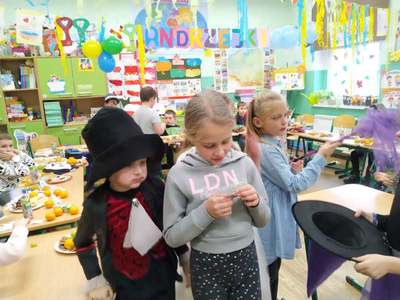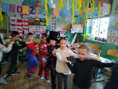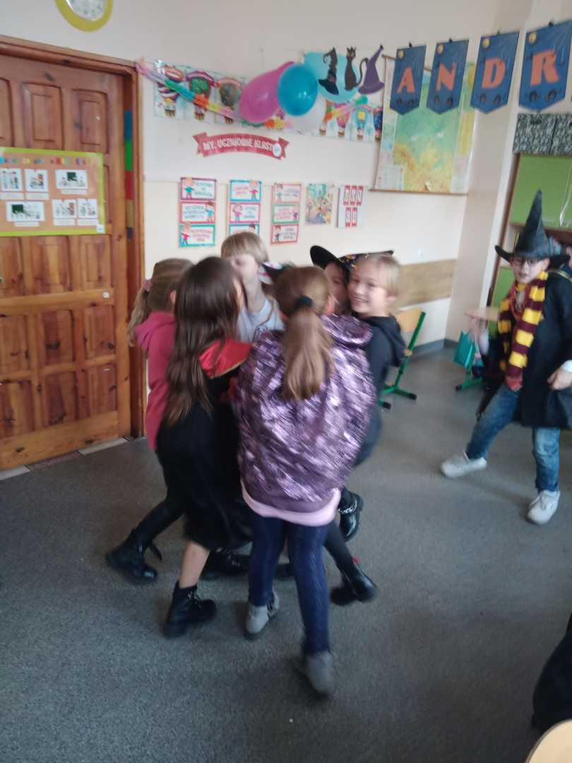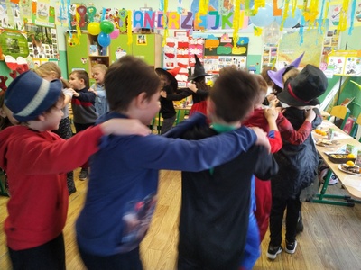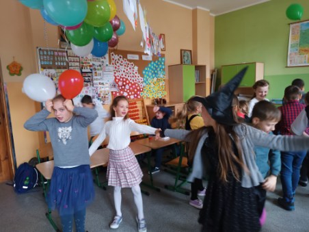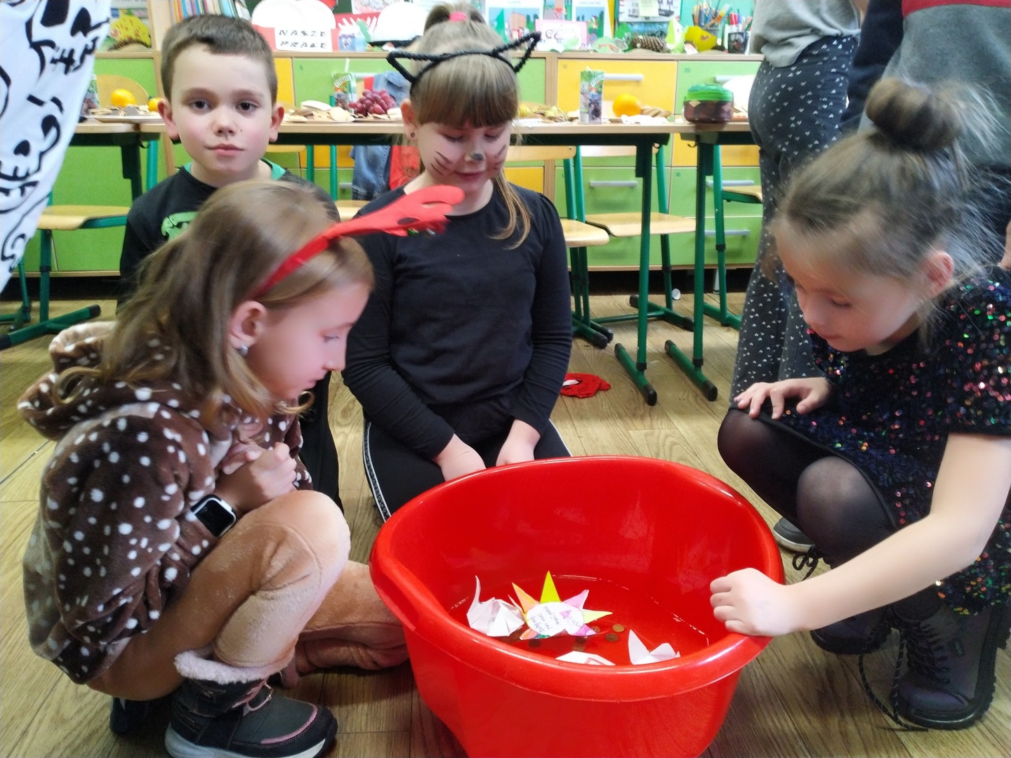 Magiczna andrzejkowa atmosfera zapanowała w klasach I-III. Zanim przystąpiono do wróżb, dzieci poznały historię tego święta, wróżby z różnych regionów Polski. Aby umilić nam ten czas rodzice zadbali o słodki poczęstunek. Po poczęstunku nadszedł czas na wróżby i zabawy andrzejkowe. Każdy chciał dowiedzieć się, co go czeka w przyszłości. Dzieci przekłuwały serduszka z imionami, poznawały swoje przyszłe zawody, magię liczb. Oczywiście nie mogło zabraknąć wróżby z butami. Bardzo dużym powodzeniem cieszyła się wróżba z miską wody ,monetą i gwiazdą. Każdy chciał, aby moneta wpadła do wody i spełniło się marzenie. Podczas tych wróżb było mnóstwo śmiechu i zabawy, bo przecież wiemy, że należy je traktować z ,,przymrużeniem oka”. Najważniejsze, że miło spędziliśmy czas i wszyscy dobrze się bawili. Oczywiście oprócz wróżb odbyły się także zabawy taneczne. „Gorące krzesła”, taniec z balonikami , taniec z miotłą to tylko niektóre z nich.