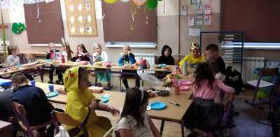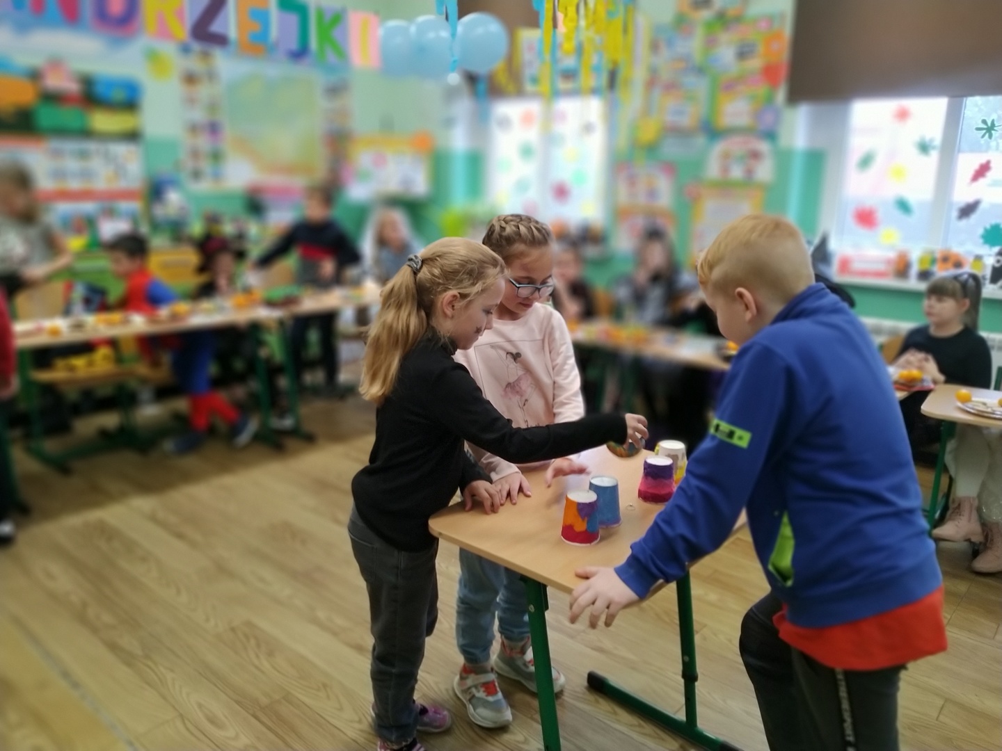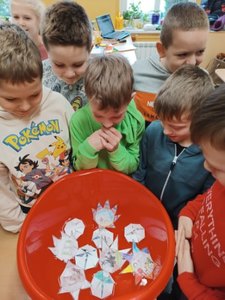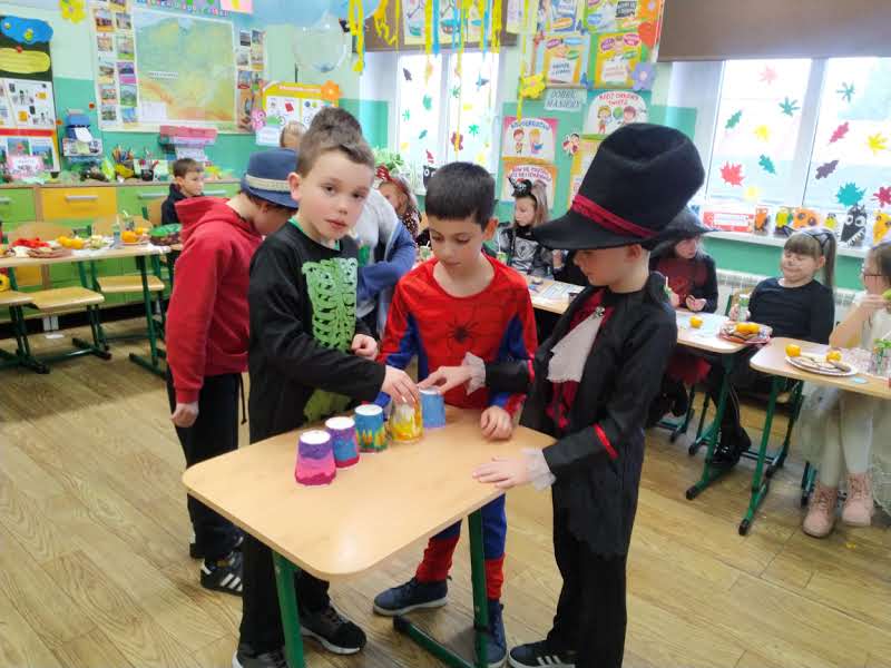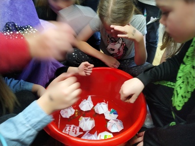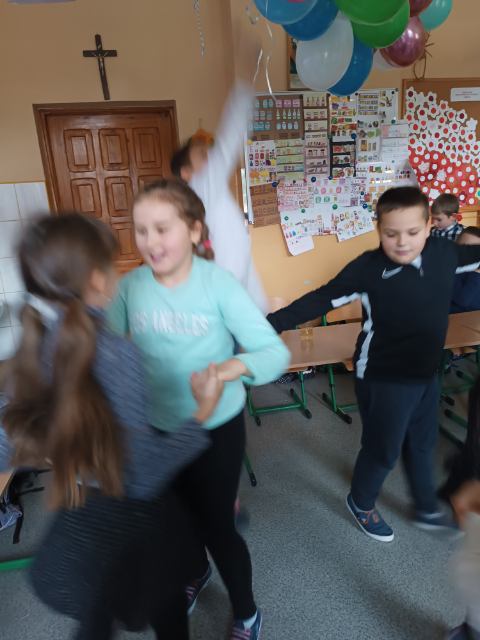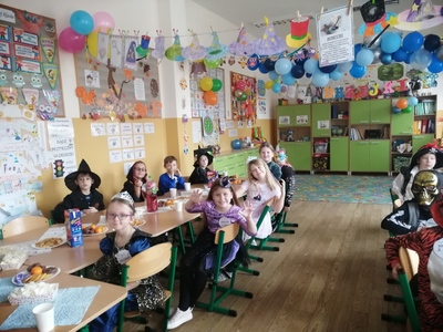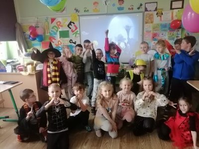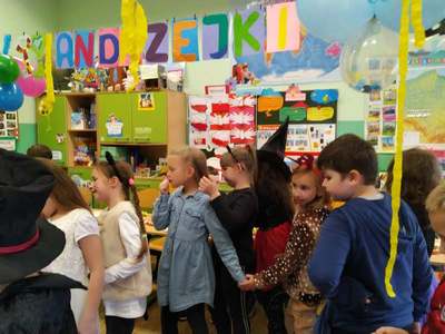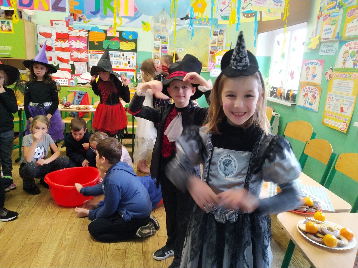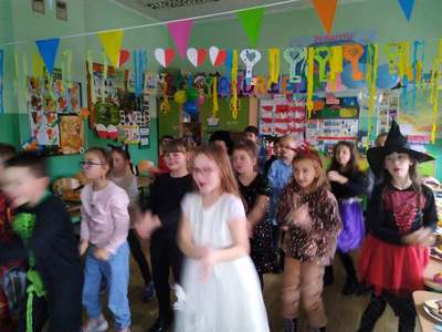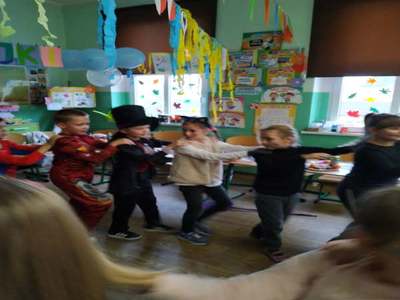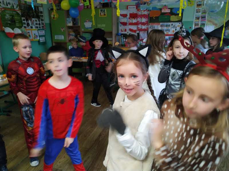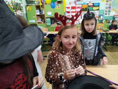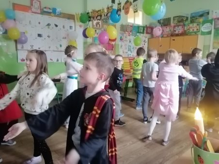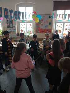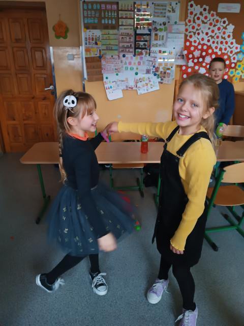 Magiczna andrzejkowa atmosfera zapanowała w klasach I-III. Zanim przystąpiono do wróżb, dzieci poznały historię tego święta, wróżby z różnych regionów Polski. Aby umilić nam ten czas rodzice zadbali o słodki poczęstunek. Po poczęstunku nadszedł czas na wróżby i zabawy andrzejkowe. Każdy chciał dowiedzieć się, co go czeka w przyszłości. Dzieci przekłuwały serduszka z imionami, poznawały swoje przyszłe zawody, magię liczb. Oczywiście nie mogło zabraknąć wróżby z butami. Bardzo dużym powodzeniem cieszyła się wróżba z miską wody ,monetą i gwiazdą. Każdy chciał, aby moneta wpadła do wody i spełniło się marzenie. Podczas tych wróżb było mnóstwo śmiechu i zabawy, bo przecież wiemy, że należy je traktować z ,,przymrużeniem oka”. Najważniejsze, że miło spędziliśmy czas i wszyscy dobrze się bawili. Oczywiście oprócz wróżb odbyły się także zabawy taneczne. „Gorące krzesła”, taniec z balonikami , taniec z miotłą to tylko niektóre z nich.