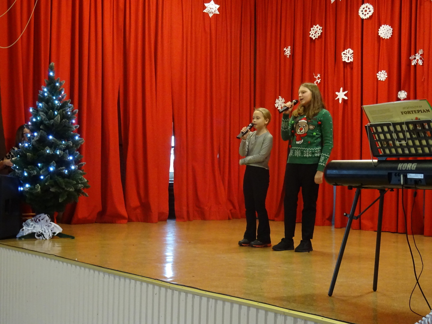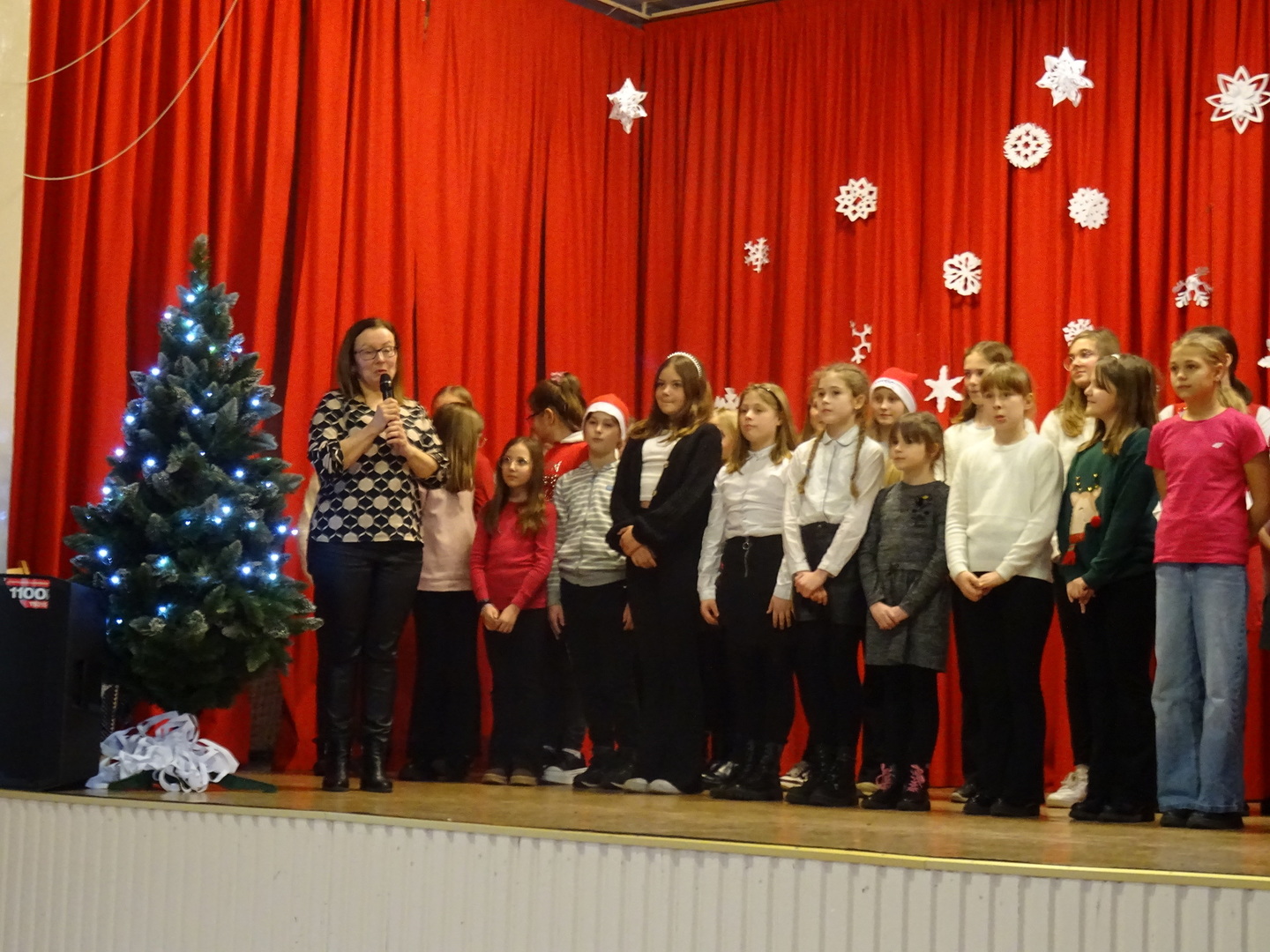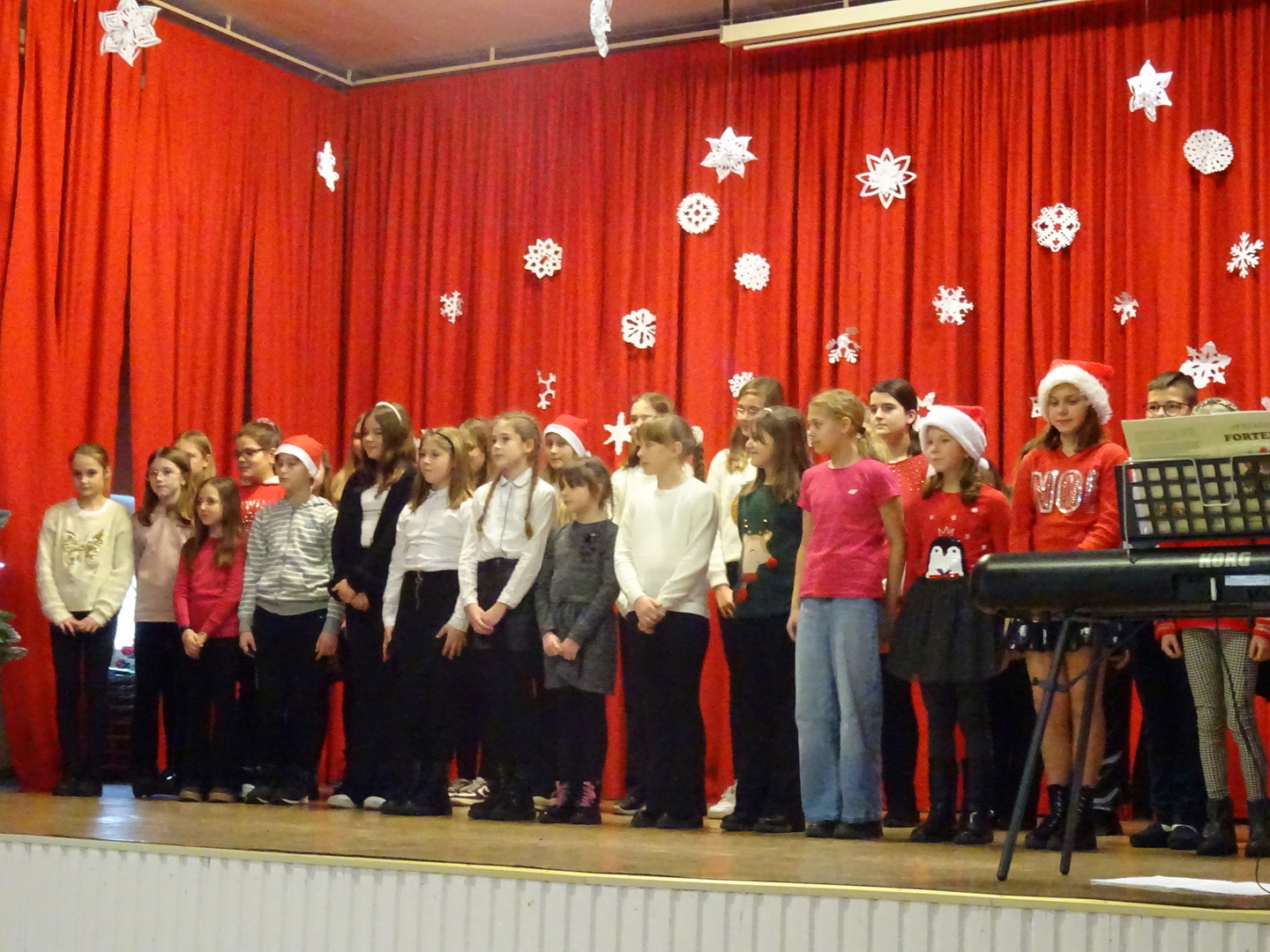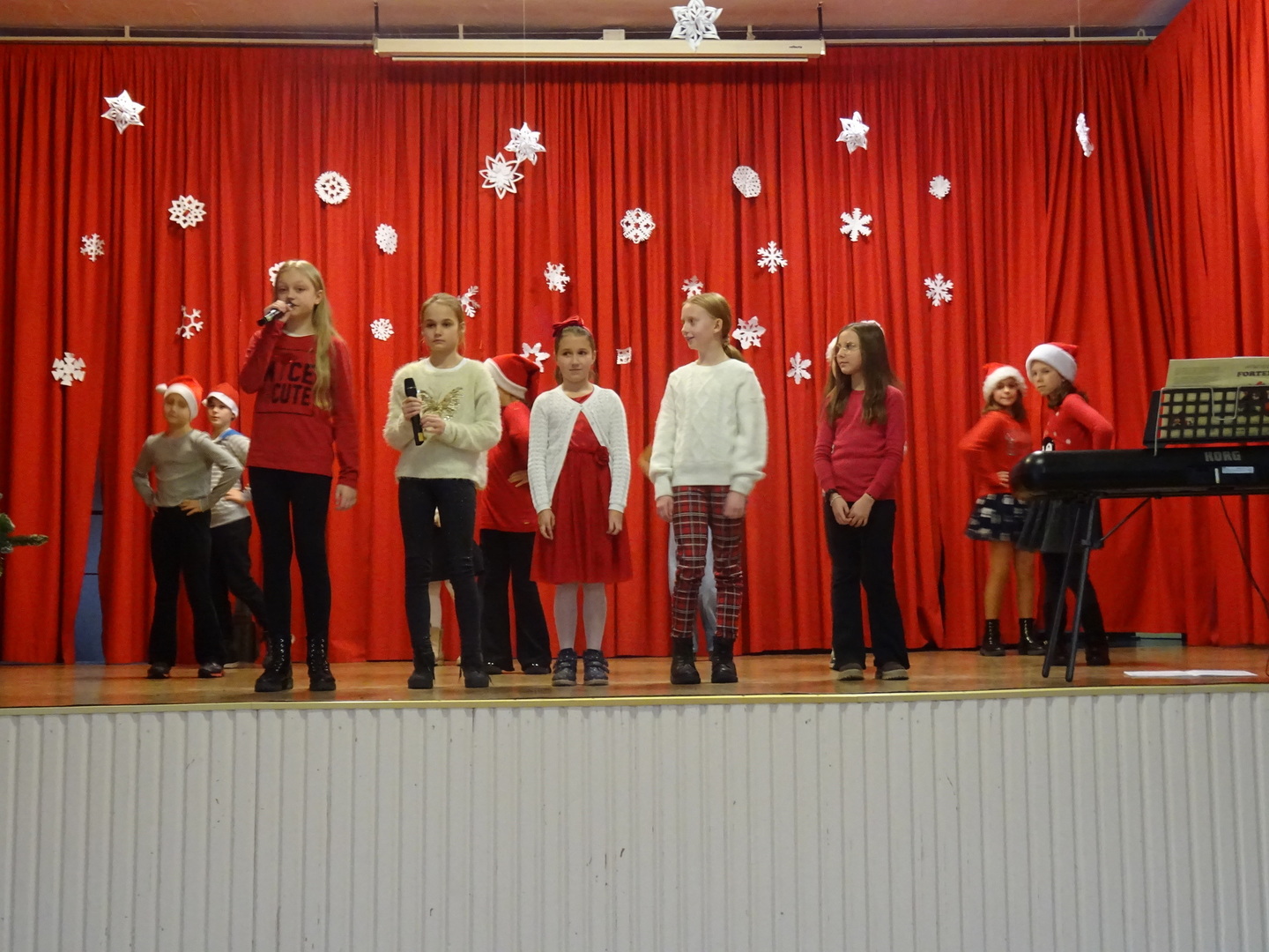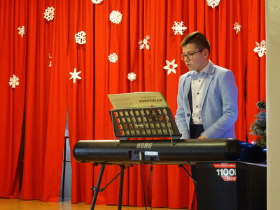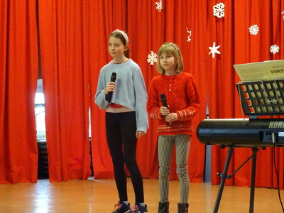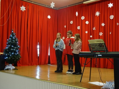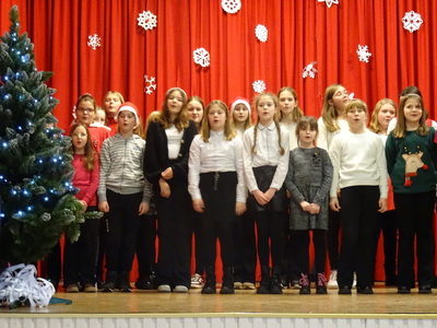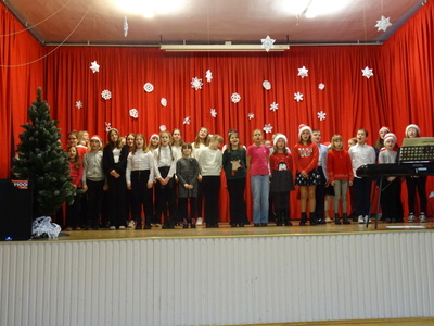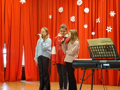 Dnia 9 stycznia 2023r. w szkolnej auli odbył się Koncert Piosenki Świątecznej, który w ciepły i radosny sposób wydłużył wszystkim wykonawcom i zaproszonym gościom czas świąt. Uczniowie klas 4-6 zaprezentowali swoje umiejętności wokalne i wokalno-instrumentalne wykonując kolędy i piosenki świąteczne. Wśród występujących, kolejny już raz pokazały się uczestniczki zajęć artystycznych z klasy 6a, które zatańczyły do utworu Merry Christmas. Dumę i satysfakcję mogą odczuwać wszyscy wykonawcy, zostali nagrodzeni gromkimi brawami, ale także Rodzice i Dziadkowie, bo ich dzieci i wnuki pięknie się zaprezentowały. Uczniowie zostali przygotowani pod kierunkiem Agnieszki Stachowskiej- nauczycielki muzyki.