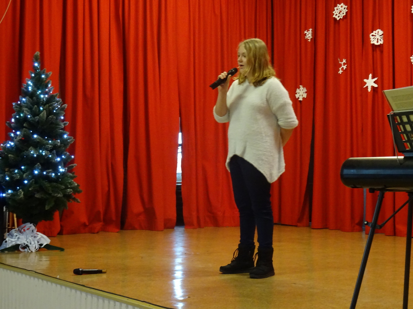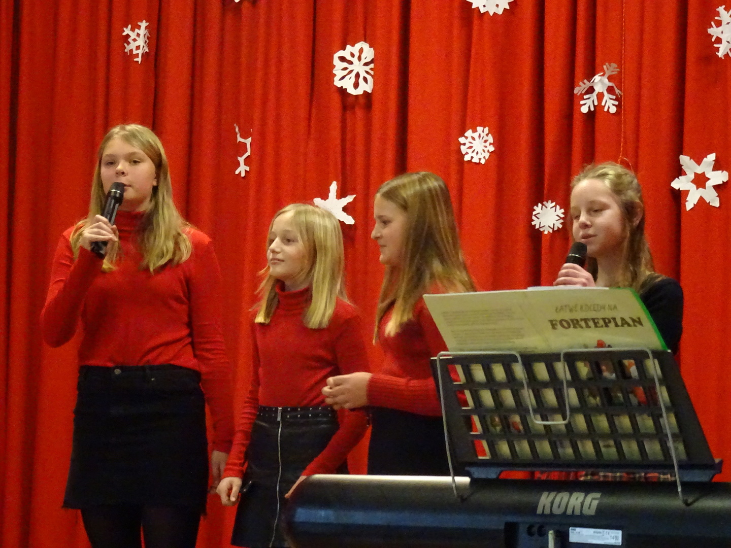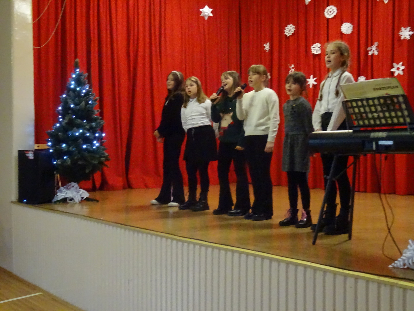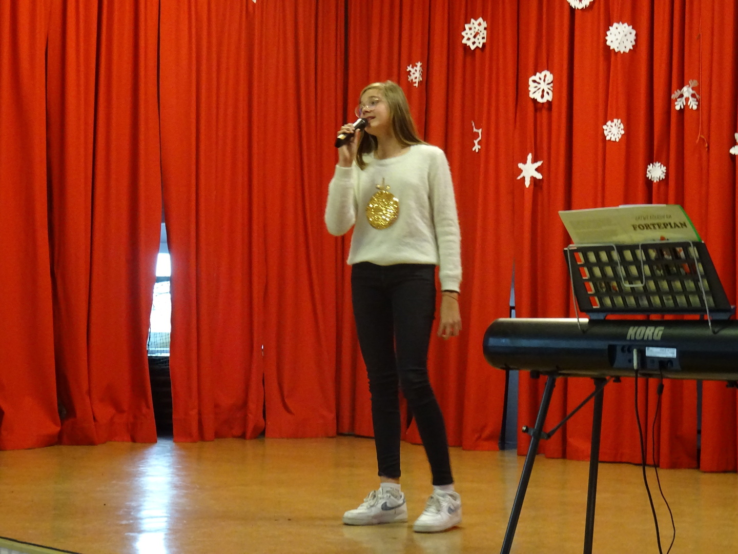 Dnia 9 stycznia 2023r. w szkolnej auli odbył się Koncert Piosenki Świątecznej, który w ciepły i radosny sposób wydłużył wszystkim wykonawcom i zaproszonym gościom czas świąt. Uczniowie klas 4-6 zaprezentowali swoje umiejętności wokalne i wokalno-instrumentalne wykonując kolędy i piosenki świąteczne. Wśród występujących, kolejny już raz pokazały się uczestniczki zajęć artystycznych z klasy 6a, które zatańczyły do utworu Merry Christmas. Dumę i satysfakcję mogą odczuwać wszyscy wykonawcy, zostali nagrodzeni gromkimi brawami, ale także Rodzice i Dziadkowie, bo ich dzieci i wnuki pięknie się zaprezentowały. Uczniowie zostali przygotowani pod kierunkiem Agnieszki Stachowskiej- nauczycielki muzyki.