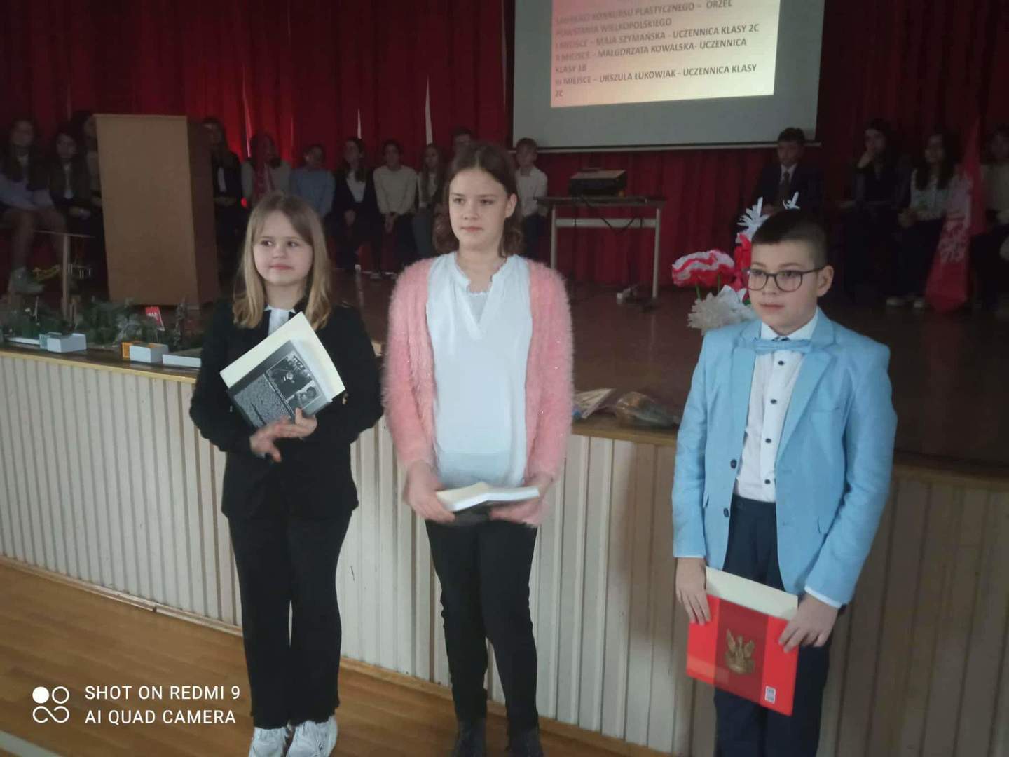 Dla klas 1-3 ogłoszono konkurs plastyczny na wykonanie dowolną technika plastyczną orła będącego symbolem Powstania Wielkopolskiego. Laureatami tego konkursu zostali: