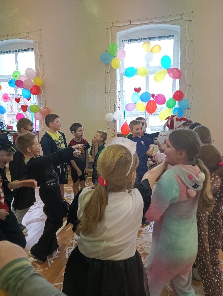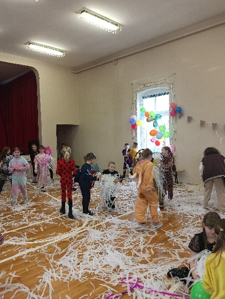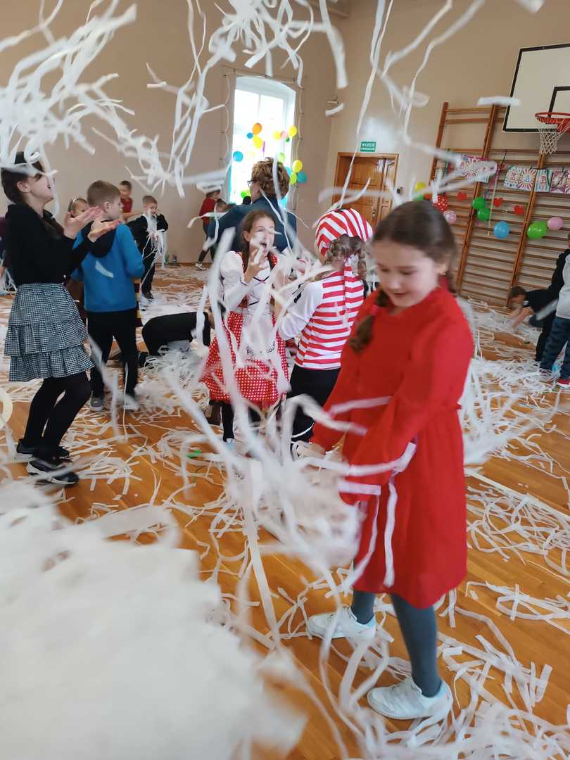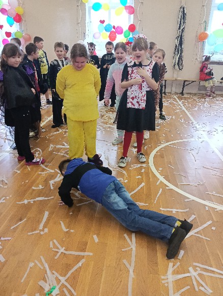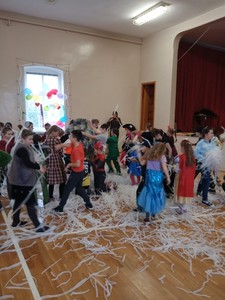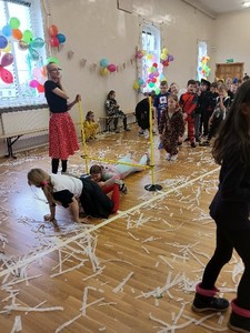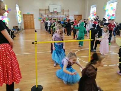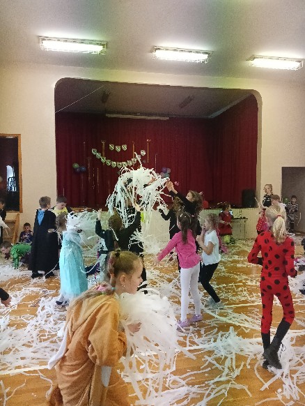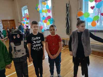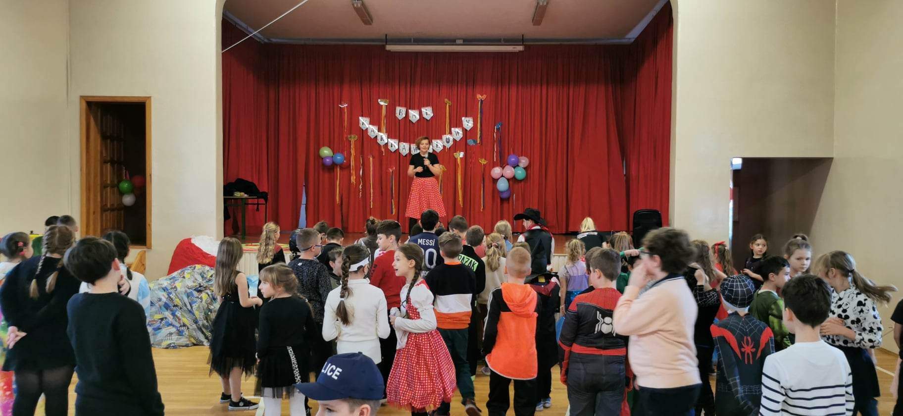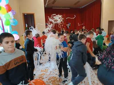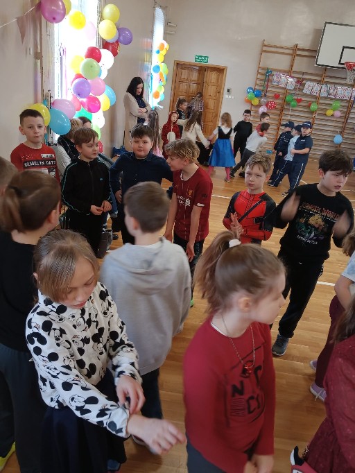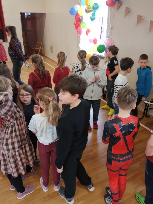 Wszystkie dzieci przebrane w kolorowe stroje bawiły się w rytm muzyki, którą zapewniły animatorki. Podczas balu odbywały się różnorodne zabawy taneczne, które przysporzyły wiele radości wszystkim uczestnikom balu. Dzieci i te młodsze i starsze bawiły się wyśmienicie przy znanych i lubianych przebojach. Nie zabrakło również zabaw i konkurencji sportowych.