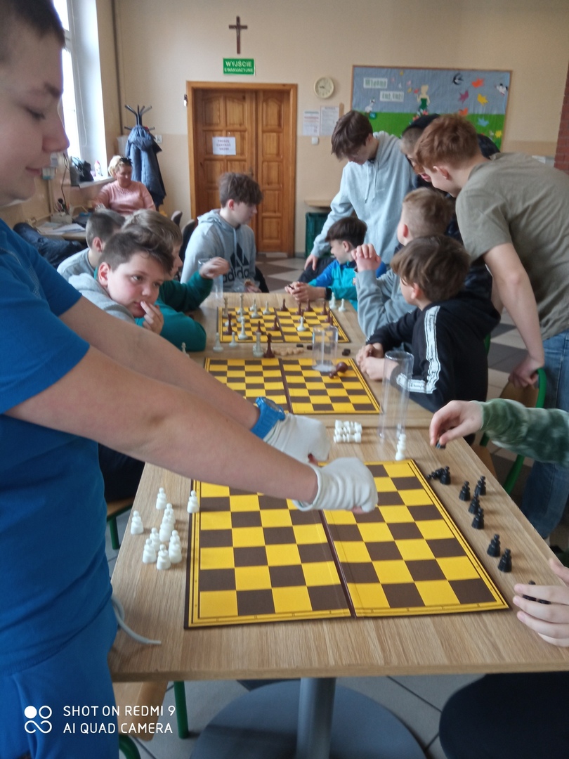 17 marca 2023 roku odbyły się Szkolne Mistrzostwa w Warcabach klas IV - VIII. W zmaganiach wzięło udział 64 uczniów, rozegrano 64 pojedynki. 1 miejsce zajął Igor Wąsowicz z klasy 8c, 2 miejsce Szymon Prozorowski z klasy 8b, a 3 miejsce Mikołaj Berger z klasy 8b. Wszystkim uczestnikom gratulujemy! Do zobaczenia w przyszłym roku!