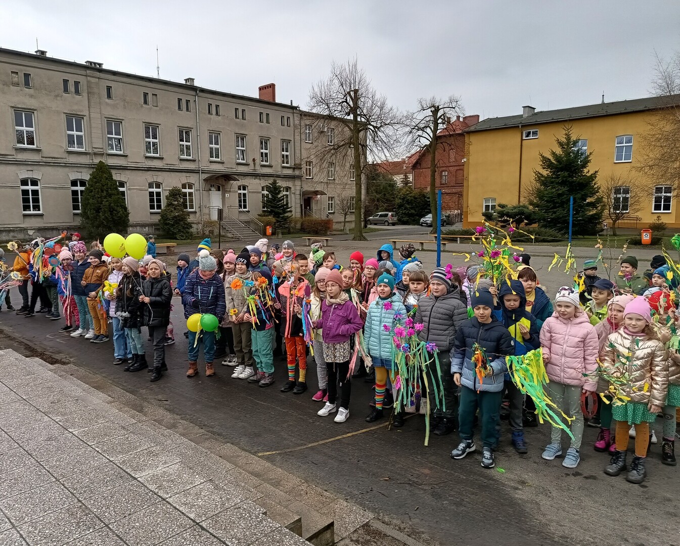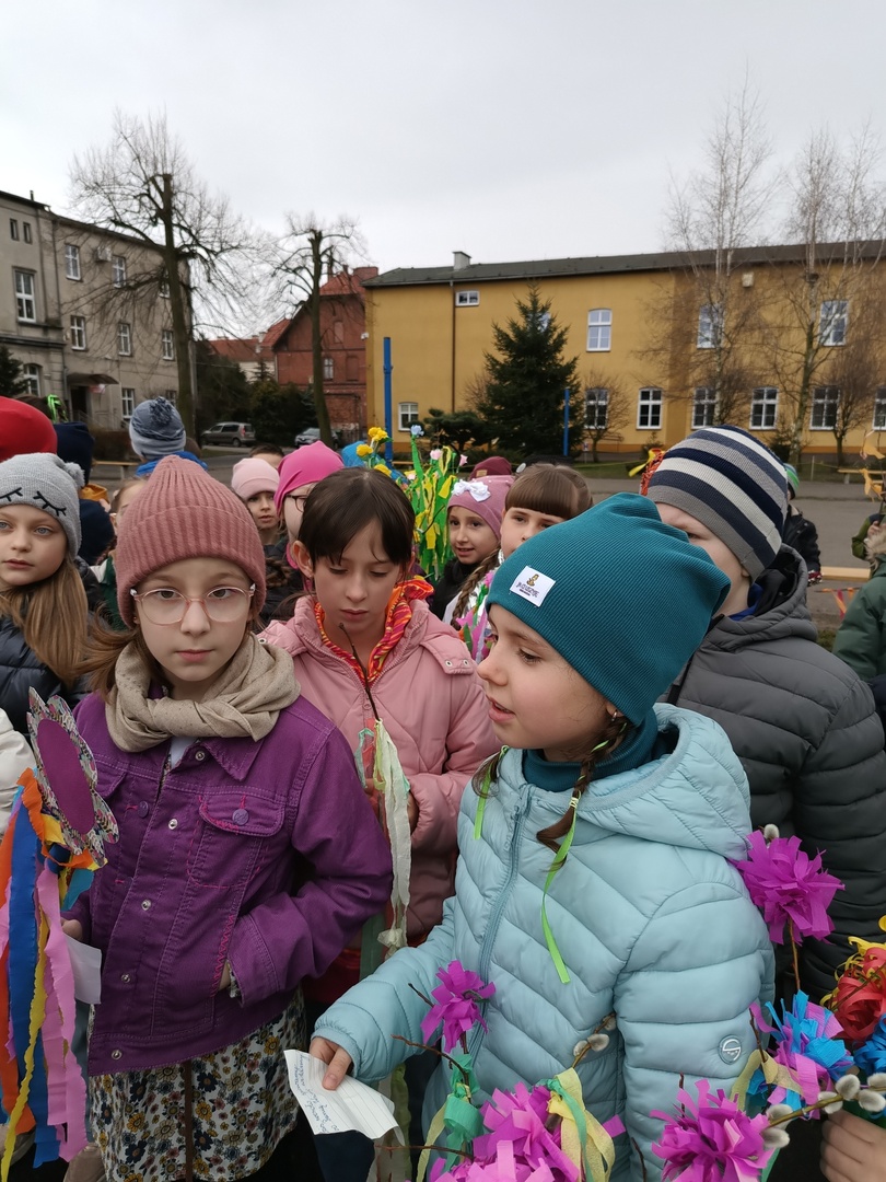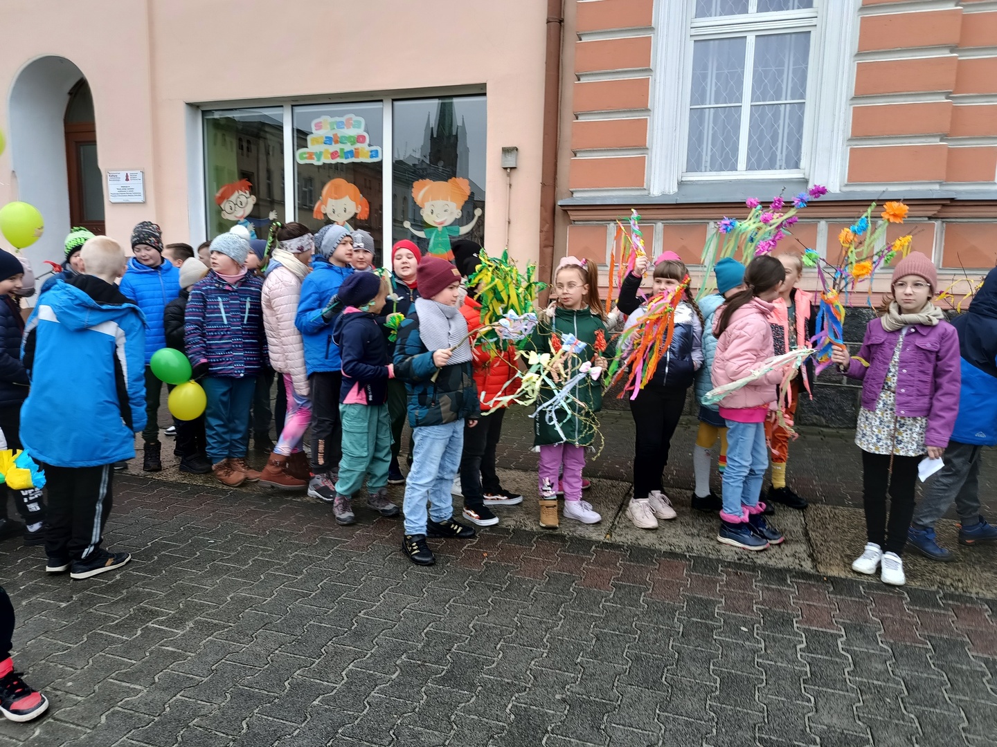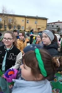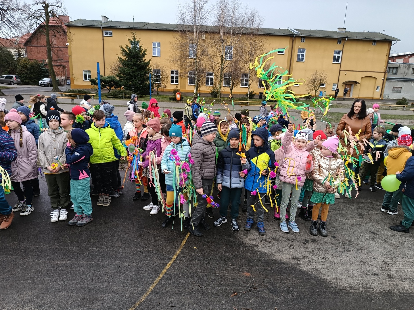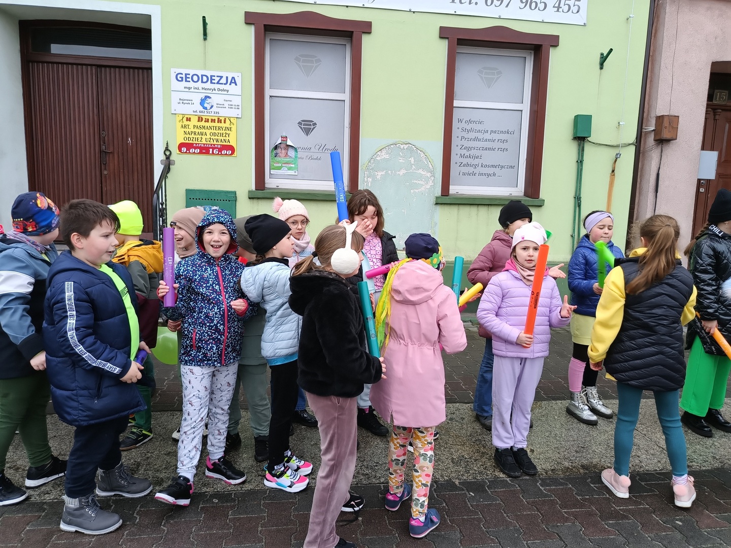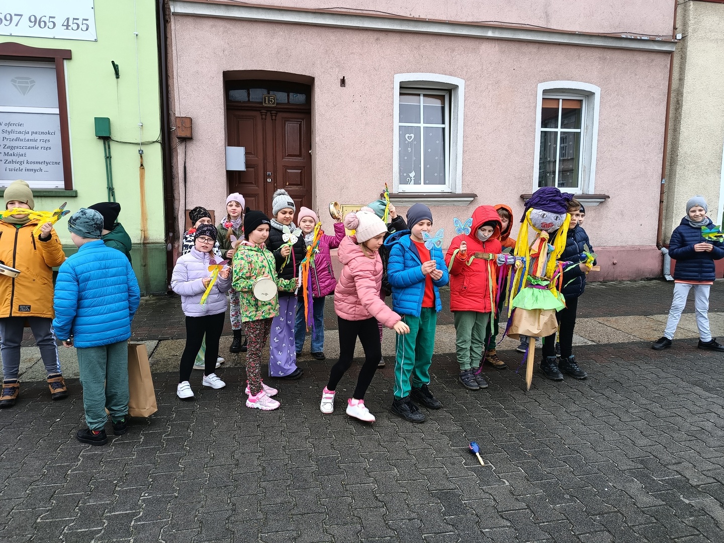 Uroczyste powitanie Wiosny rozpoczęło się od kolorowego korowodu uczniów i nauczycieli ulicami Bojanowa, na czele którego uczniowie kl.3 nieśli Marzannę, przygotowaną z ekologicznych materiałów. Wszyscy uczniowie mieli piękne wiosenne, kolorowe gaiki, kwiaty, żółte i zielone baloniki a na twarzach gościł uśmiech i radość. Maszerując wokół Rynku śpiewali wiosenne piosenki i wznosili okrzyki: "Precz zimo zła!", " Witaj Wiosno!" itp. Dzisiejszy dzień, to "Dzień kolorowej skarpetki"- w związku obchodami Światowego Dnia Osób z Zespołem Downa i dlatego wszyscy nasi uczniowie mieli dzisiaj kolorowe skarpetki nie do pary, by pokazać tym osobom i ich bliskim akceptację, aprobatę i wsparcie.