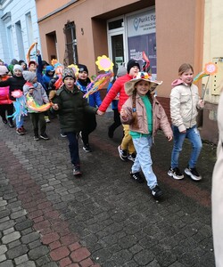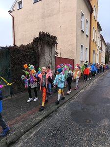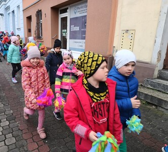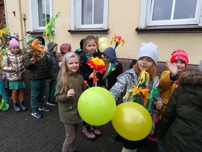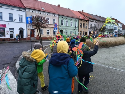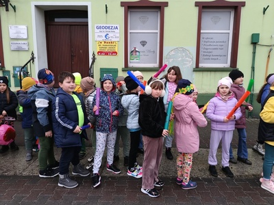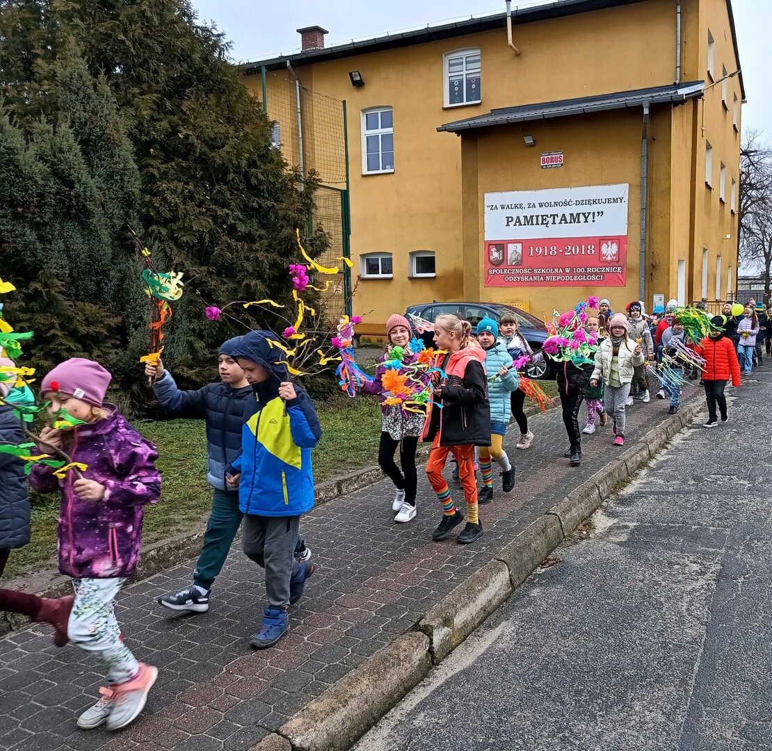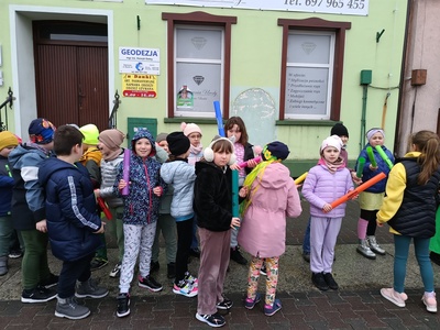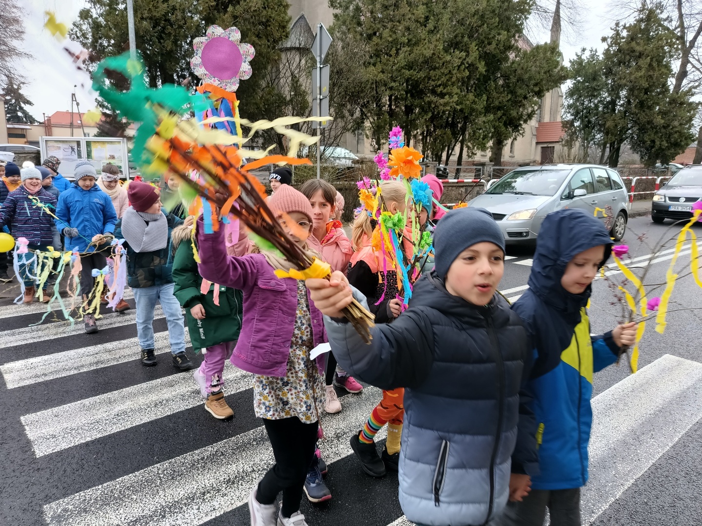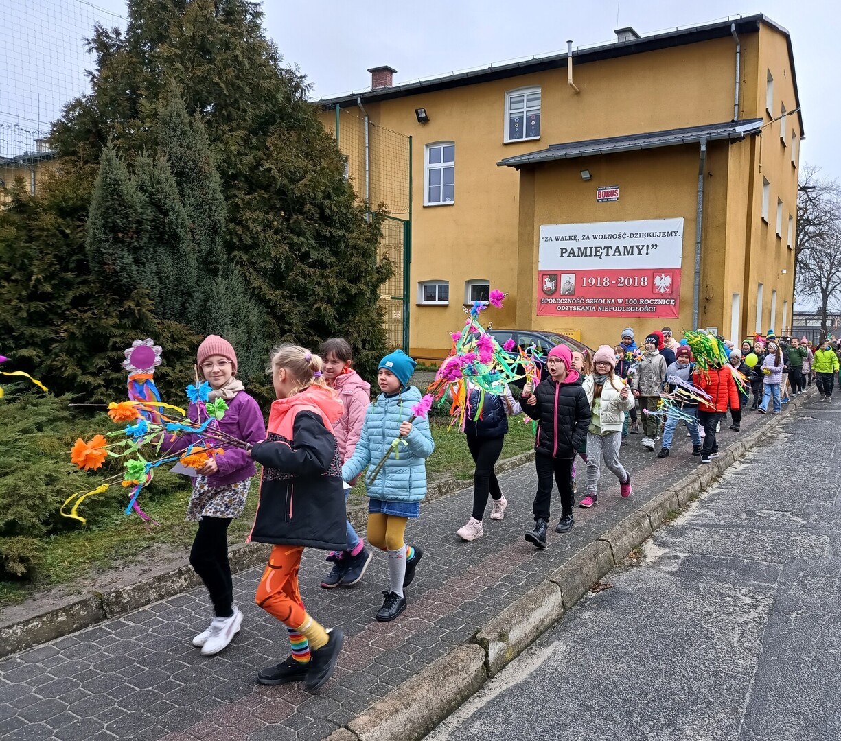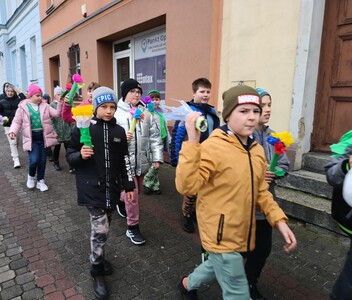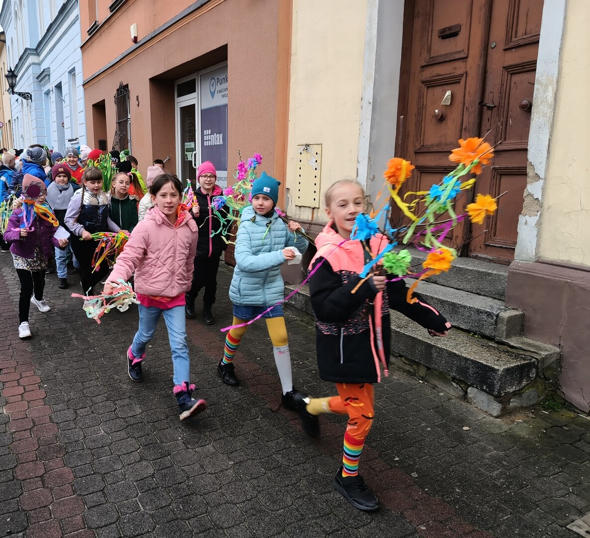 Uroczyste powitanie Wiosny rozpoczęło się od kolorowego korowodu uczniów i nauczycieli ulicami Bojanowa, na czele którego uczniowie kl.3 nieśli Marzannę, przygotowaną z ekologicznych materiałów. Wszyscy uczniowie mieli piękne wiosenne, kolorowe gaiki, kwiaty, żółte i zielone baloniki a na twarzach gościł uśmiech i radość. Maszerując wokół Rynku śpiewali wiosenne piosenki i wznosili okrzyki: "Precz zimo zła!", " Witaj Wiosno!" itp. Dzisiejszy dzień, to "Dzień kolorowej skarpetki"- w związku obchodami Światowego Dnia Osób z Zespołem Downa i dlatego wszyscy nasi uczniowie mieli dzisiaj kolorowe skarpetki nie do pary, by pokazać tym osobom i ich bliskim akceptację, aprobatę i wsparcie.