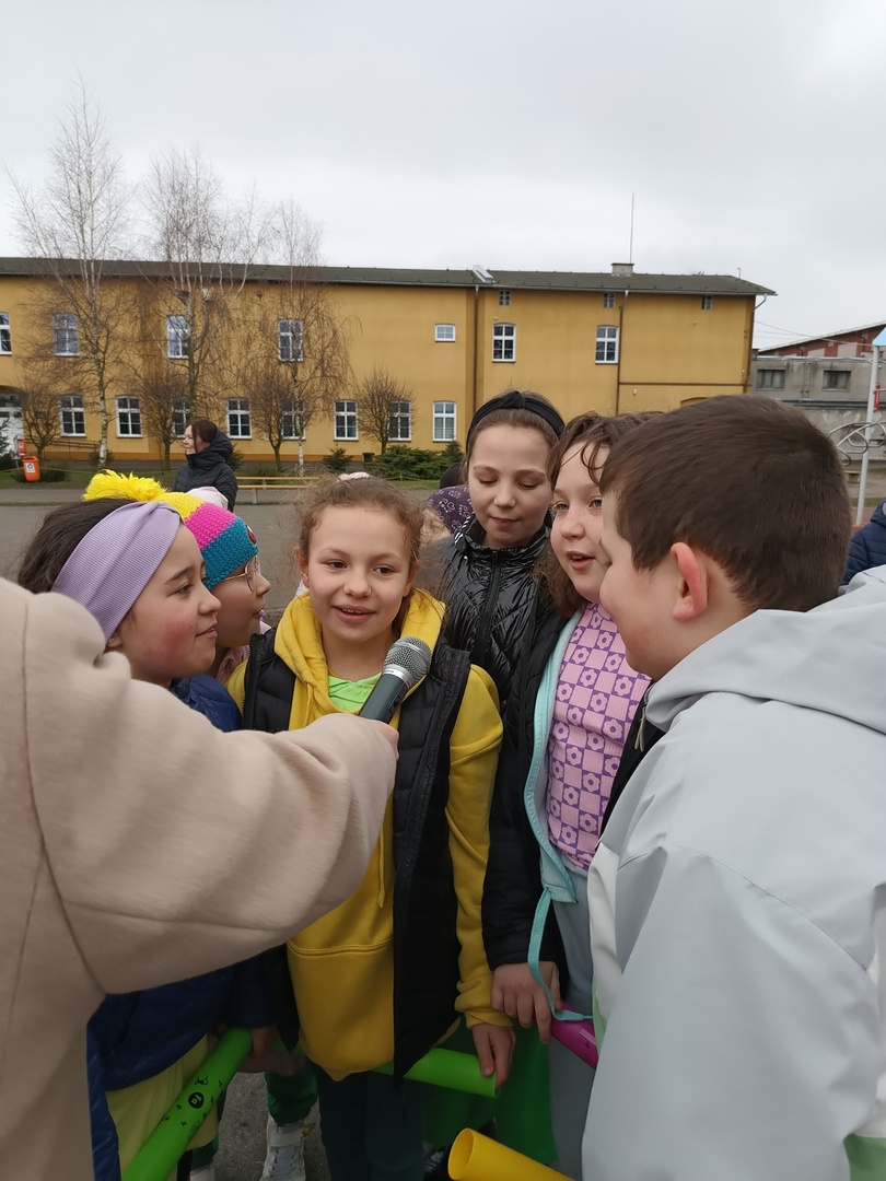 Na boisku szkolnym każda klasa zaprezentowała hasło na powitanie WIOSNY. Odbyła się ich głośna prezentacja: