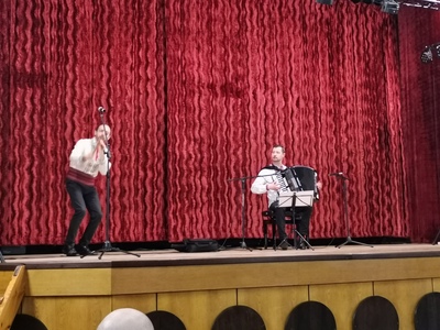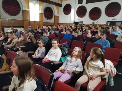 W poniedziałkowe przedpołudnie uczniowie naszej szkoły uczestniczyli w koncercie edukacyjnym. Koncert rozpoczął sie utworem skomponowanym przez ukraińskiego kompozytora Myrosława Skoryka. Prowadzący koncert zapoznał uczniów z instrumentami, na których grali muzycy - był to akordeon, fletnia Pana i okarayna. Muzycy zagrali utwory wesołe i smutne, bo taka jest muzyka ukraińska. Koncert zakończył się znana wszystki pieśnia "Sokoły".