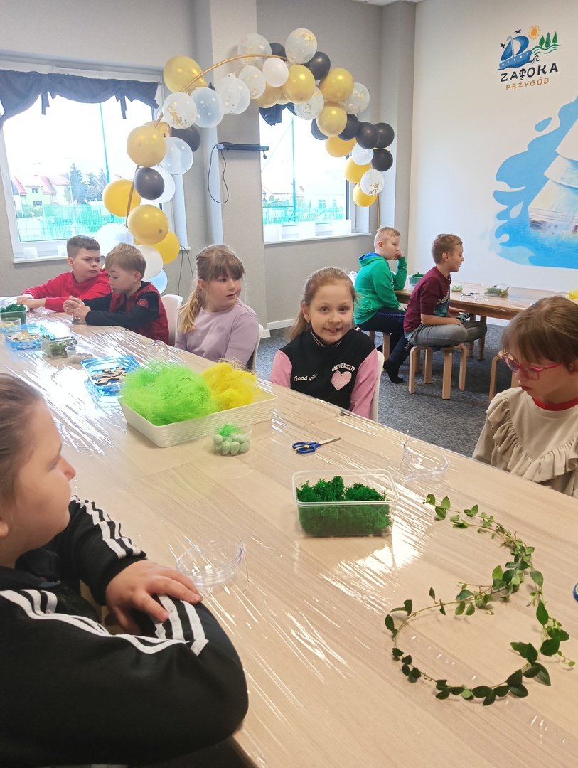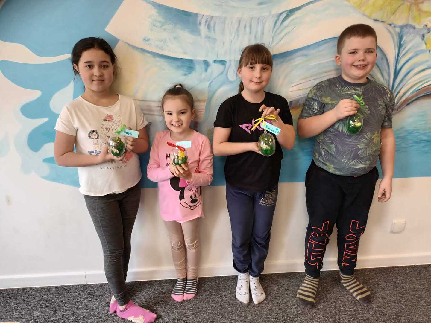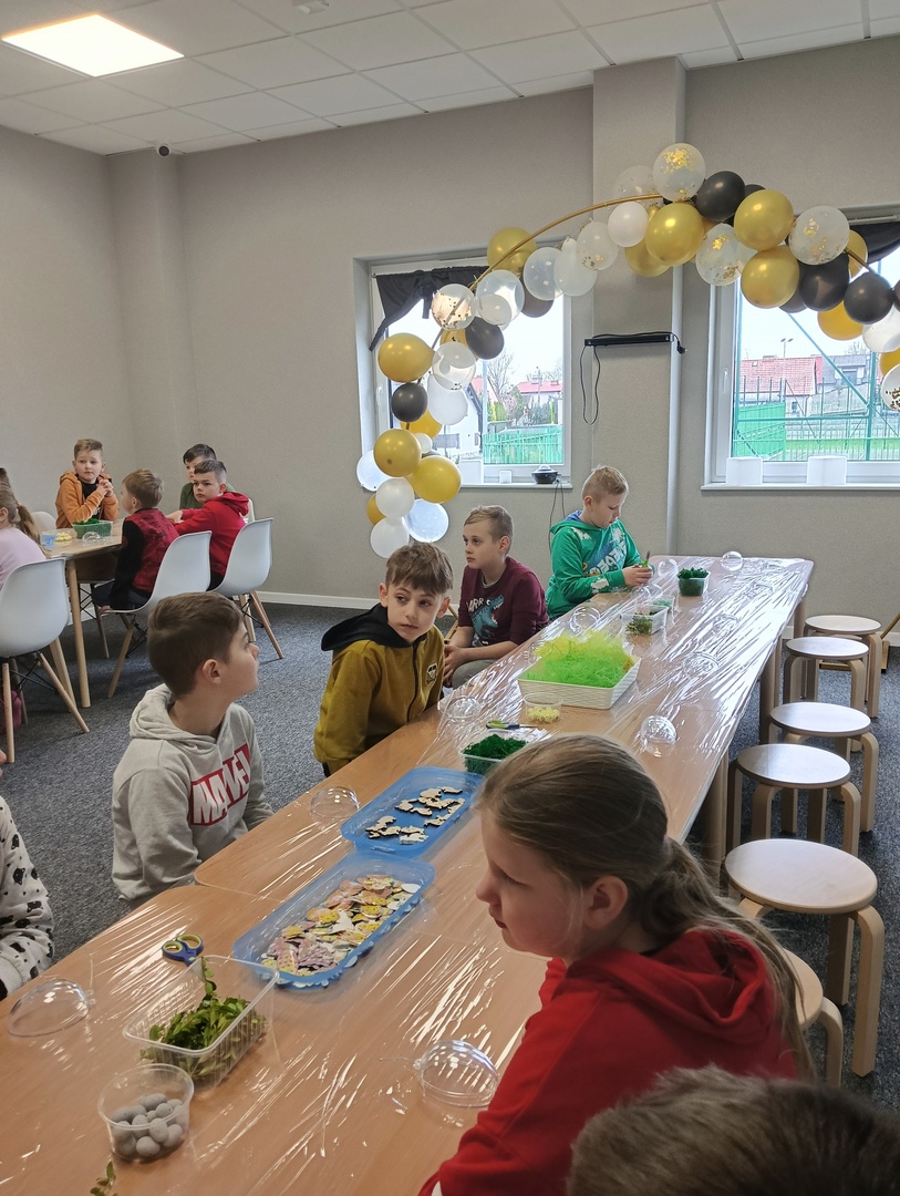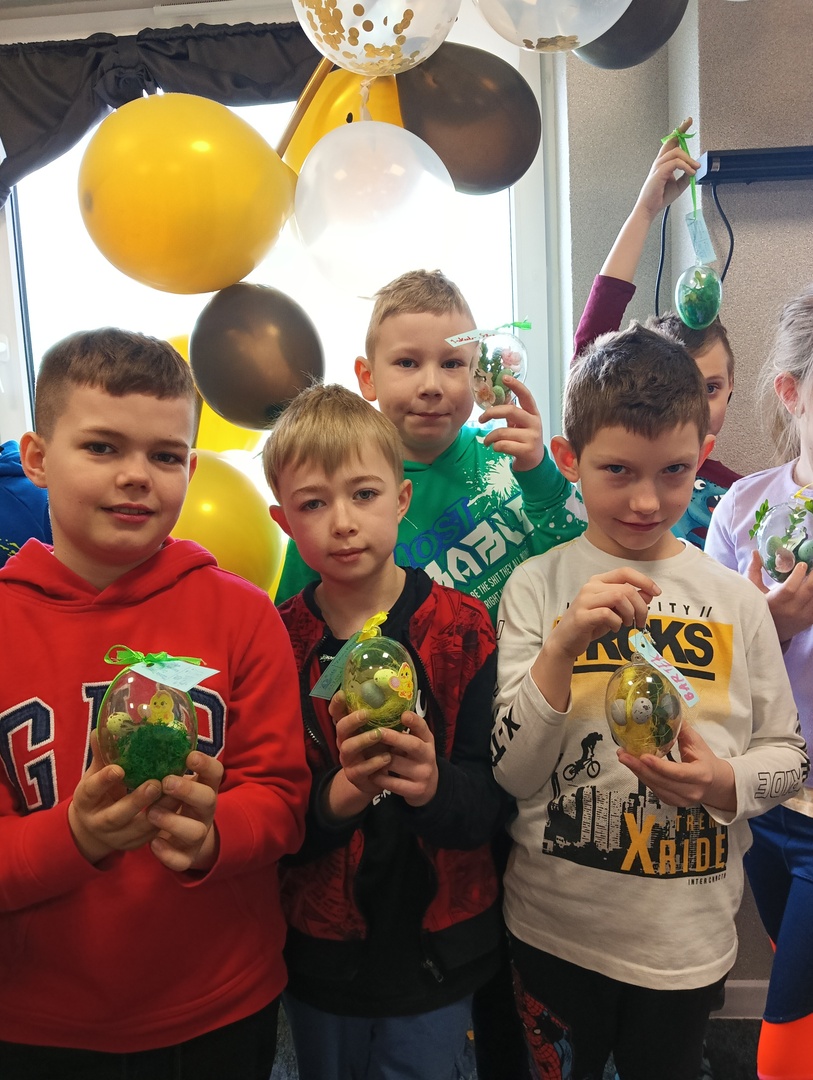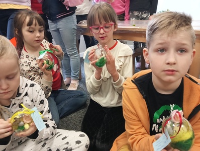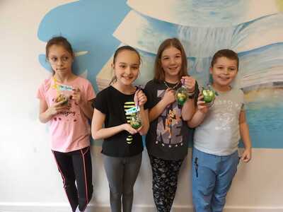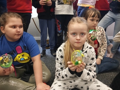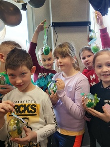 4 kwietnia 2023 r. uczniowie klasy 2a i 2b wraz z wychowawczyniami wzięli udział w warsztatach wielkanocnych organizowanych przez Centrum Kreatywnej Zabawy - „Zatoka Przygód” w Rydzynie.
