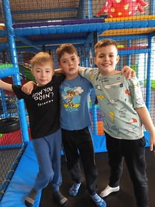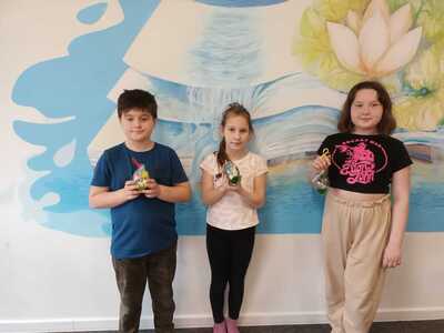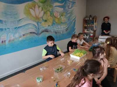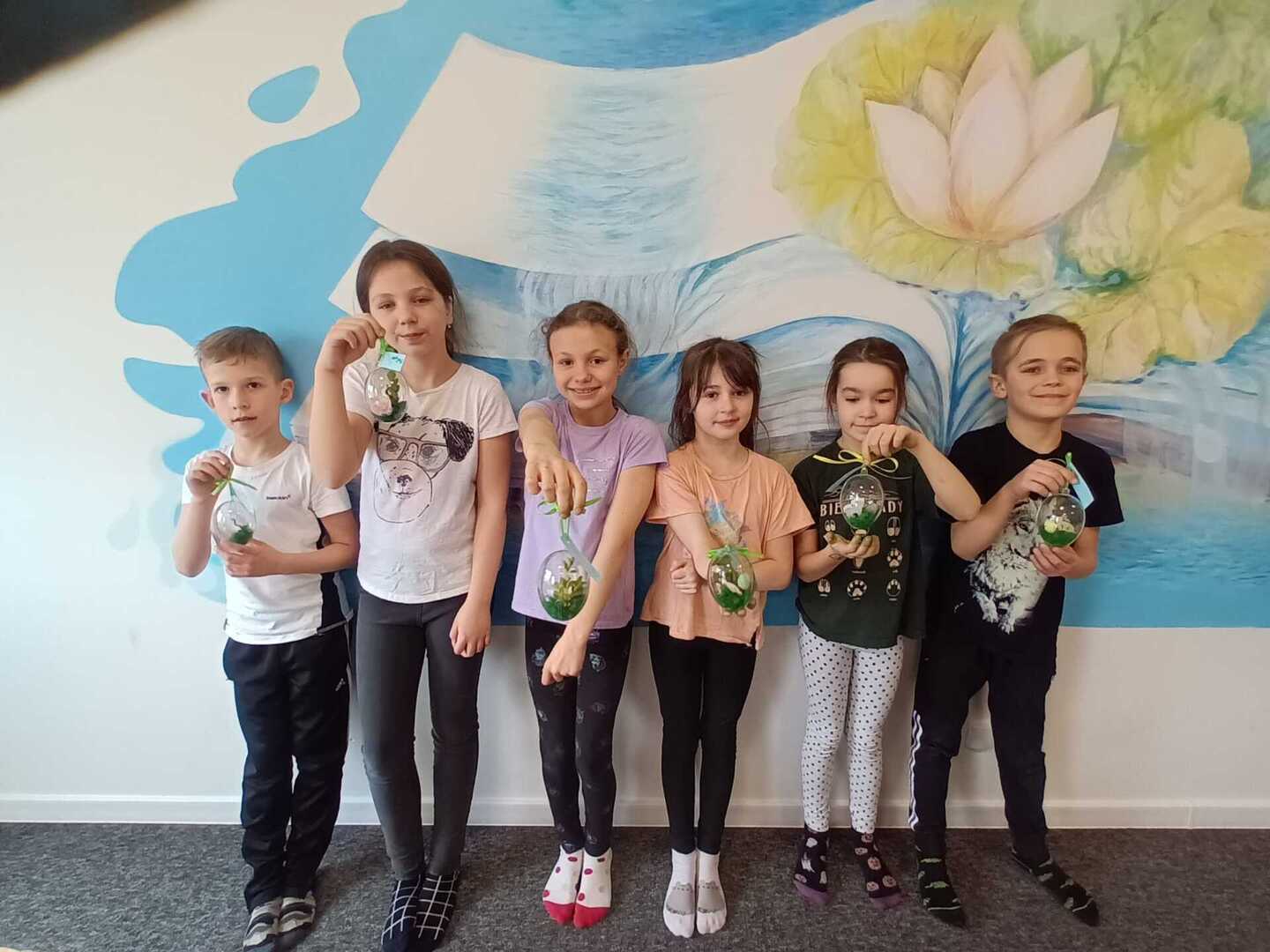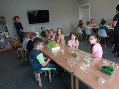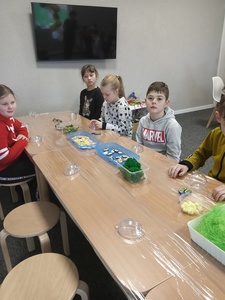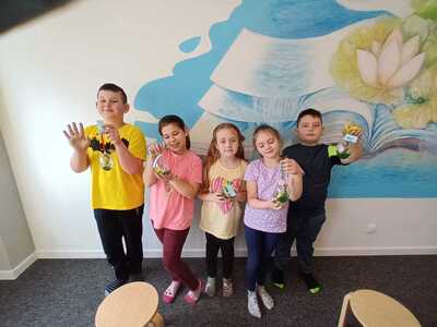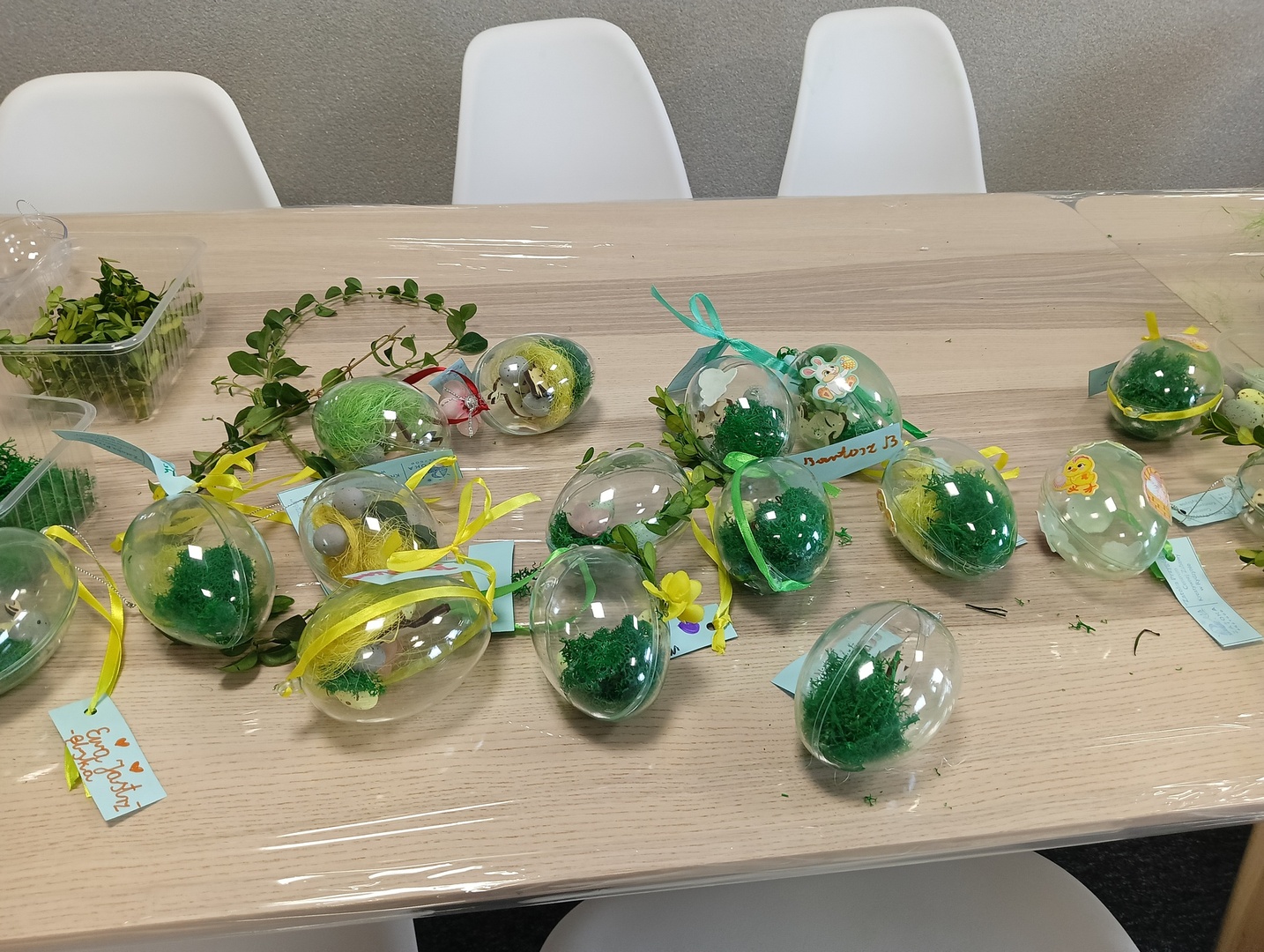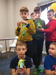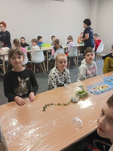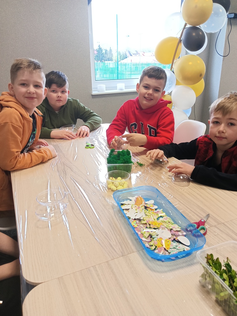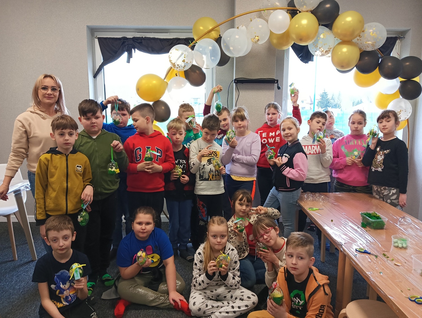 4 kwietnia 2023 r. uczniowie klasy 2a i 2b wraz z wychowawczyniami wzięli udział w warsztatach wielkanocnych organizowanych przez Centrum Kreatywnej Zabawy - „Zatoka Przygód” w Rydzynie.