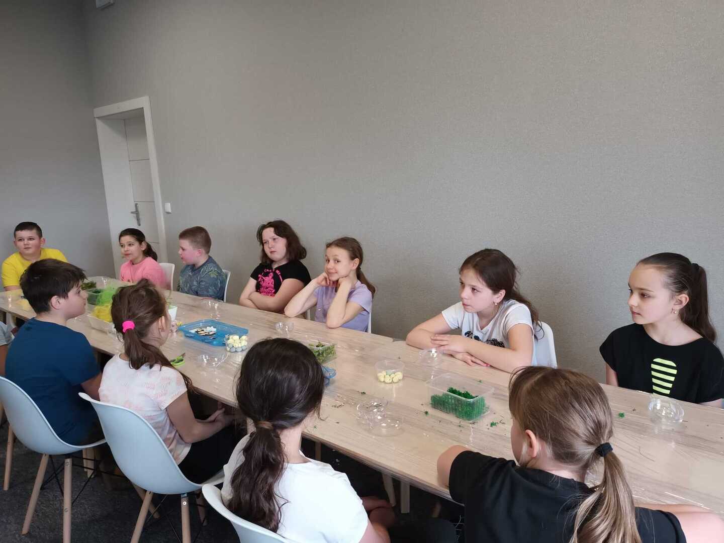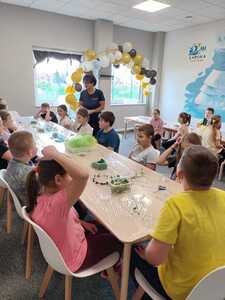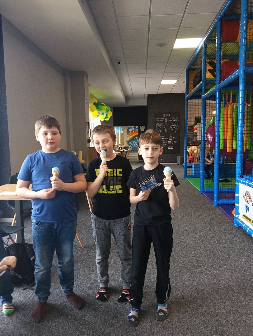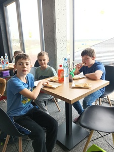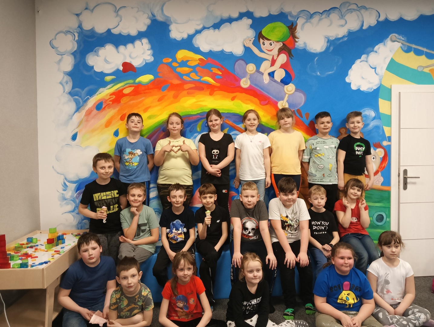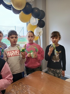 Uczniowie mieli okazję uczestniczyć w ciekawych zajęciach edukacyjnych podczas, których dowiedzieli się na przykład czym różnią się pisanki od kraszanek, poznali różne techniki zdobienia jajek i w końcu sami mieli możliwość wykonania pięknych pisanek, które z pewnością ozdobią stoły wielkanocne w ich domach. Po „ciężkiej”, ale jak i twórczej pracy przyszedł czas na przekąskę w postaci tostów, a następnie wspaniałą zabawę w małpim gaju, zabawy interaktywne czy korzystanie z zjeżdżalni pontonowej.