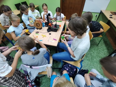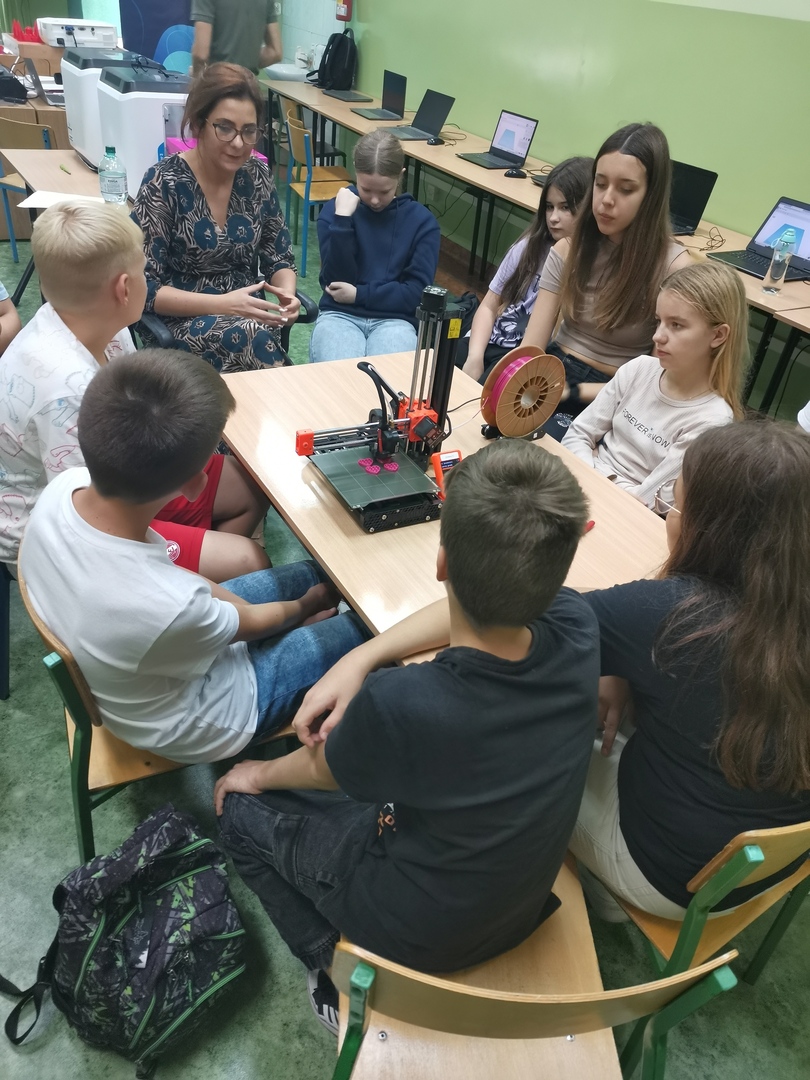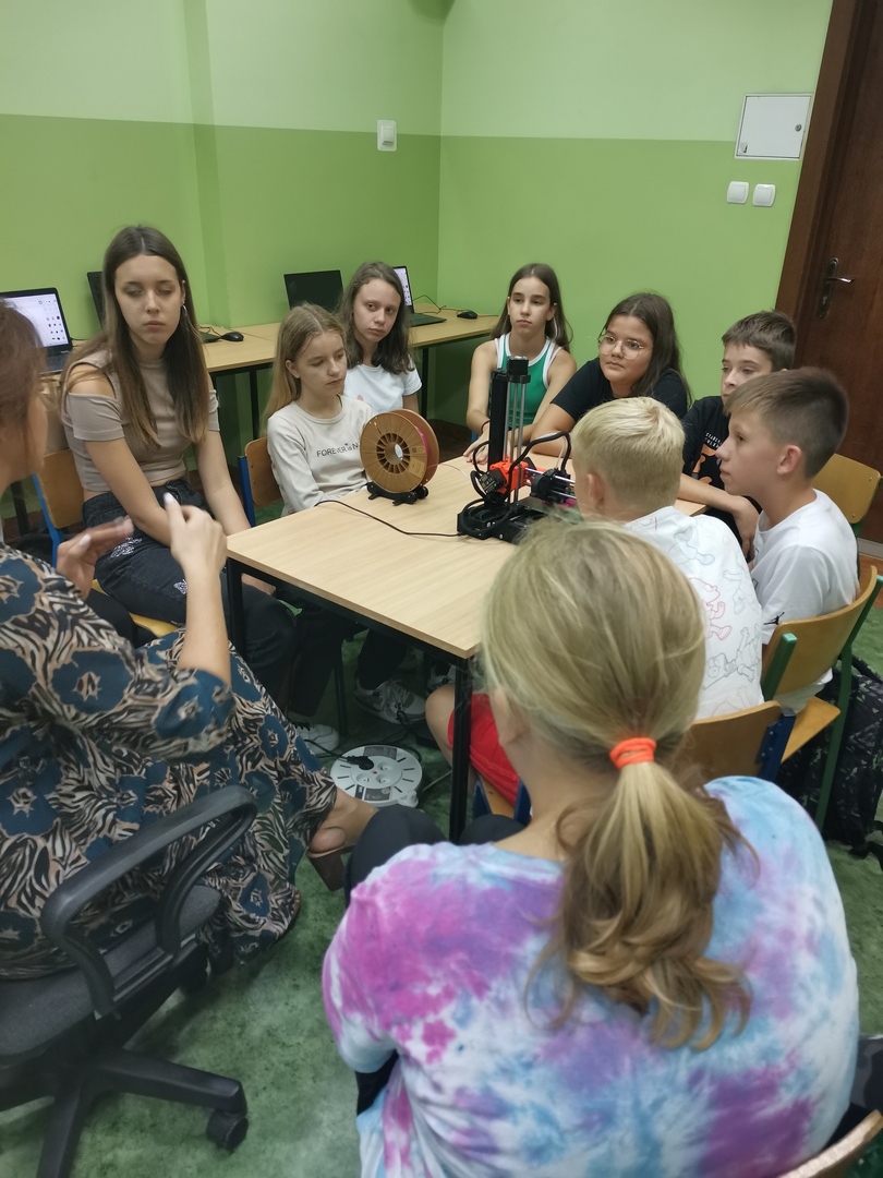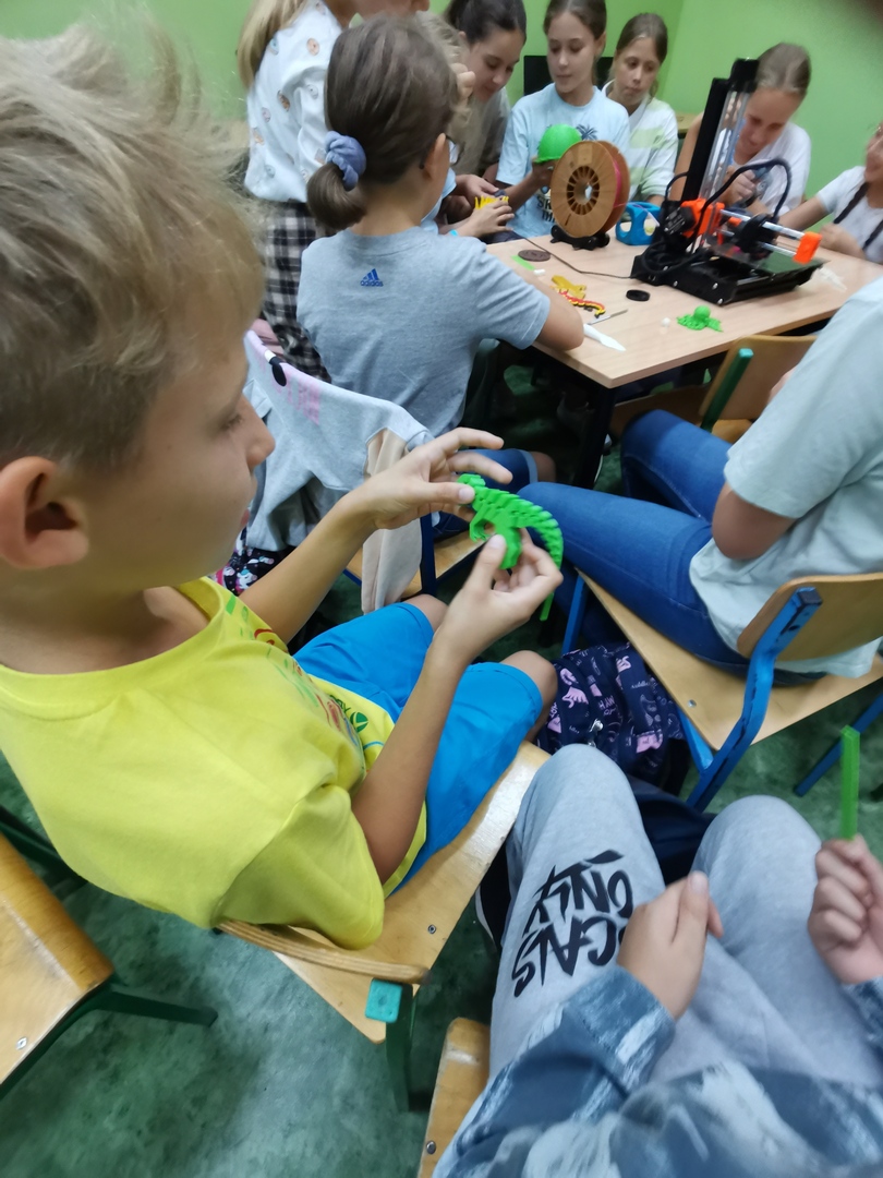 Uczniowie klas 5 i 6 wzięli udział w warsztatach modelowania druku 3d oraz w zajęciach z goglami VR. W czasie pierwszych warsztatów uczniowie zapoznali się z praca drukarki 3d, mieli także możliwość stworzenia projektu wg własnego pomysłu.