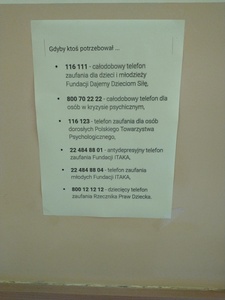 Z kolei starsi uczniowie podczas lekcji z wychowawcą dowiedzieli się, dlaczego śmiech to zdrowie, a także rozmawiali na temat zdrowia psychicznego i dobrego nastroju. Następnie, w kilkuosobowych zespołach, przygotowały plakaty o własnych sposobach na dobre samopoczucie. We wtorkowy poranek, na dobry początek dnia, w klasach na uczniów czekał słoik pozytywnych myśli. Uczniowie "częstowali się" karteczkami z pozytywnymi sentencjami, które mogli zachować dla siebie na później. Na szkolnych gazetkach pojawiły się tematyczne obrazki związane z dobrym zdrowiem psychicznym.