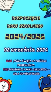Rozpoczęcie roku szkolnego - klasy II - VIII Zdjęcia Zobacz również Wyprawka pierwszoklasisty Szkolny zestaw podręczników - rok szkolny 2024/2025 Odszedł Sergiusz Chwiłkowski Rozpoczęcie roku szkolnego - klasy II - VIII Rozpoczęcie roku szkolnego - klasy 1 Rozpoczęcie roku szkolnego - kursy autobusów w... 26 sierpnia 2024 Aktualności Wydrukuj Udostępnij Wyświetlono: 248