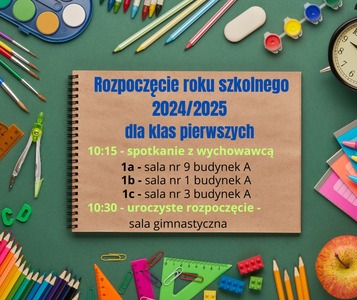 Rozpoczęcie roku szkolnego - klasy 1 Zdjęcia Zobacz również Szkolny zestaw podręczników - rok szkolny 2024/2025 Odszedł Sergiusz Chwiłkowski Rozpoczęcie roku szkolnego - klasy II - VIII Rozpoczęcie roku szkolnego - klasy 1 Rozpoczęcie roku szkolnego - kursy autobusów w... Rozkład jazdy autobusów - 1 semestr - rok szkolny... 26 sierpnia 2024 Aktualności Wydrukuj Udostępnij Wyświetlono: 215