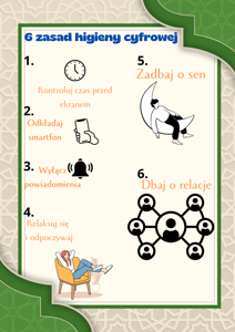 Temat ten został omówiony na zajęciach kółka informatycznego, a uczniowie klasy 6a przygotowali prezentacje i ulotki z zasadami higieny cyfrowej.