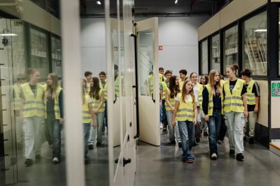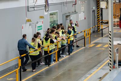 Mieli również okazję porozmawiać z pracownikami obsługującymi maszyny, zadając pytania dotyczące ich pracy i technologii wykorzystywanych w zakładzie.
